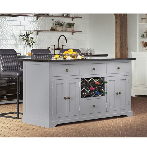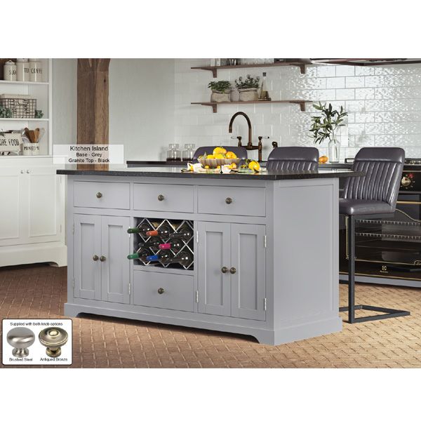Introducing our versatile and stylish kitchen island, a perfect addition to any modern kitchen. With its grey painted base and durable black granite worktop, it offers functionality and elegance. Ideal for storage, food preparation, casual dining, or as a central point for socializing, it features a long-lasting and robust surface. The island includes three drawers and one central drawer, with artificial drawer fronts at the back to accommodate the breakfast bar overhang. Two large cupboards, each with a removable shelf, provide versatile storage options.