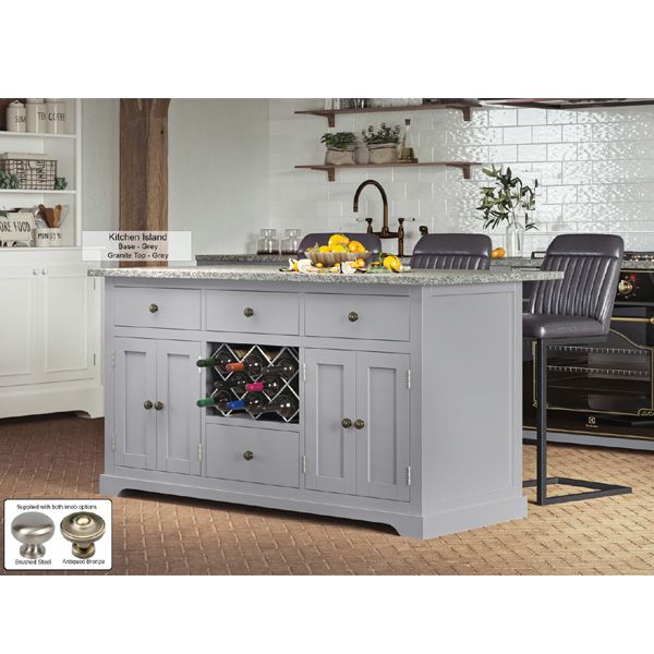 Elevate your kitchen with our stylish and multifunctional kitchen island, featuring a grey painted base and durable grey granite worktop. Perfect for storage, food preparation, or casual dining, this island serves as a central point for socializing with family and guests. With its robust granite worktop and adjustable breakfast bar overhang, it offers versatility in usage.
