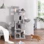 Inside the creative workshop of FEANDREA, two sweet kittens jump around, personally examining our scratching trees and giving their animal feedback. Thus, the designers of FEANDREA get to know firsthand whether the products meet the requirements of pampered whisker wearers.The highlights of the cat tree at a glance:- High stability; has a base plate reinforced with wooden strips, as well as an anti-tip kit- Robust sisal posts- Covered with fluffy, extra-durable plush fabric- 3 cat houses, 2 basket loungers, 2 observing platforms- Extra-large; suitable for several cats- Stair-like arrangement of the individual elements; simplified ascent- Fun fur balls with bells