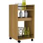 Introducing the Naples Serving Cart/Side Table in oak effect, a stylish and versatile addition to any living room or kitchen. With a 3D paint effect and 3D plastic veneer, this serving cart exudes a warm and inviting vibe. Constructed from MDF, it's both durable and easy to clean. The painted finish and plastic feet ensure a long-lasting and stable piece. Perfect for entertaining guests or everyday use, this serving cart features three spacious shelves for storage and display.