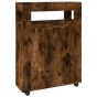 Narrow Bathroom Cabinet with Wheels Smoked Oak Engineered Wood - vid-855272