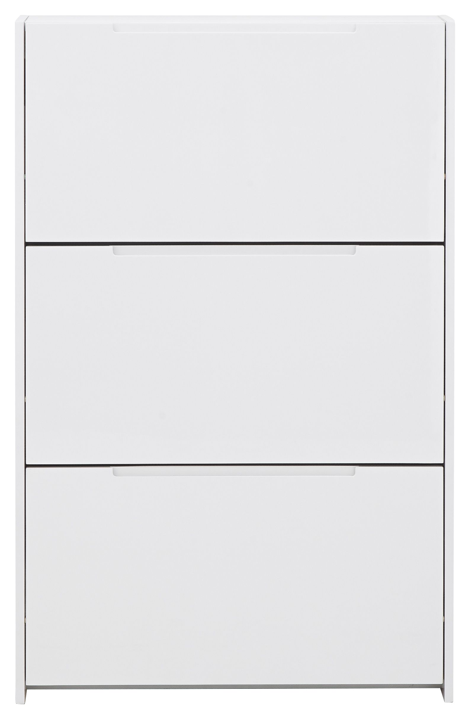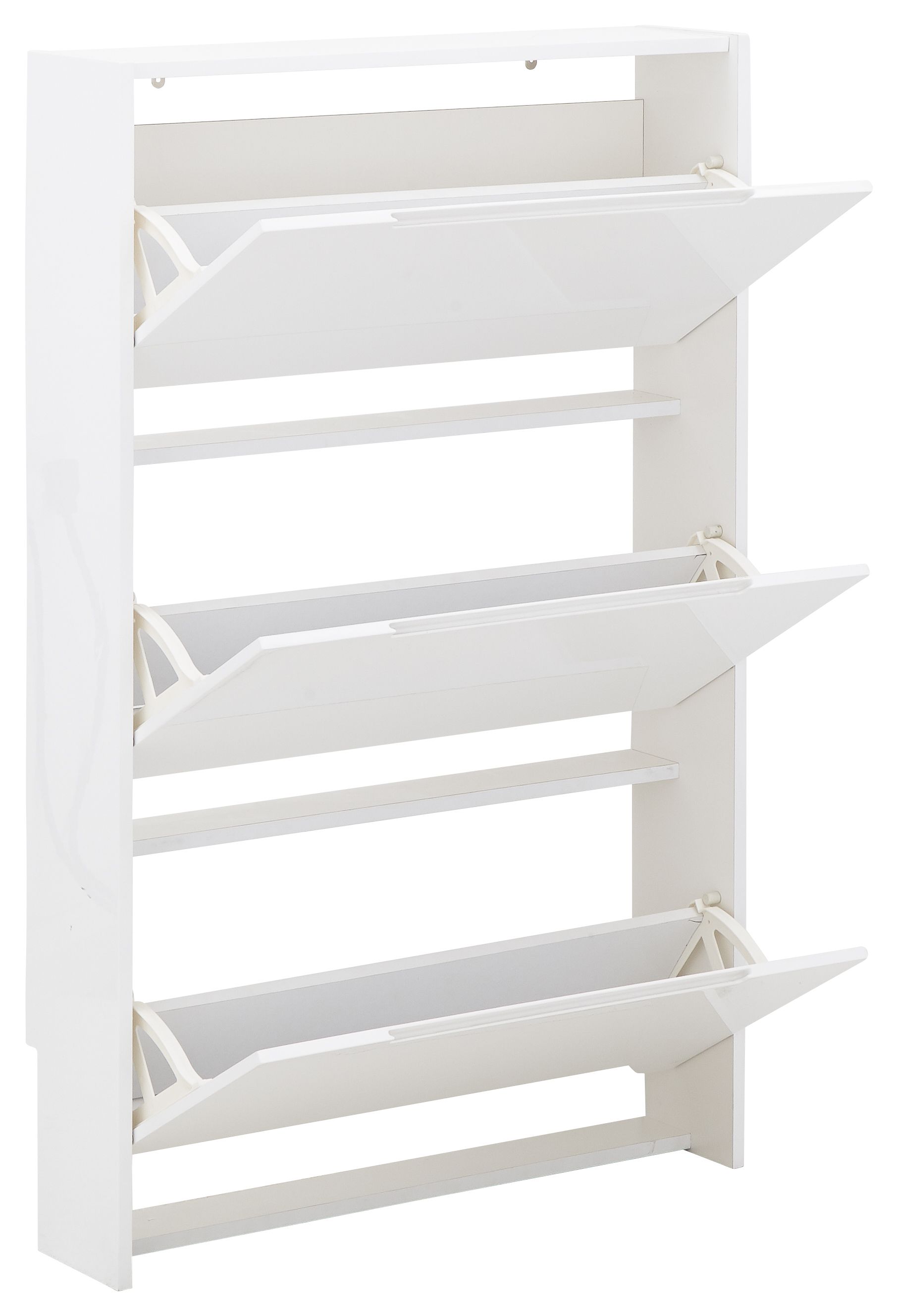 Narrow High Gloss 3 Tier Shoe Cabinet White