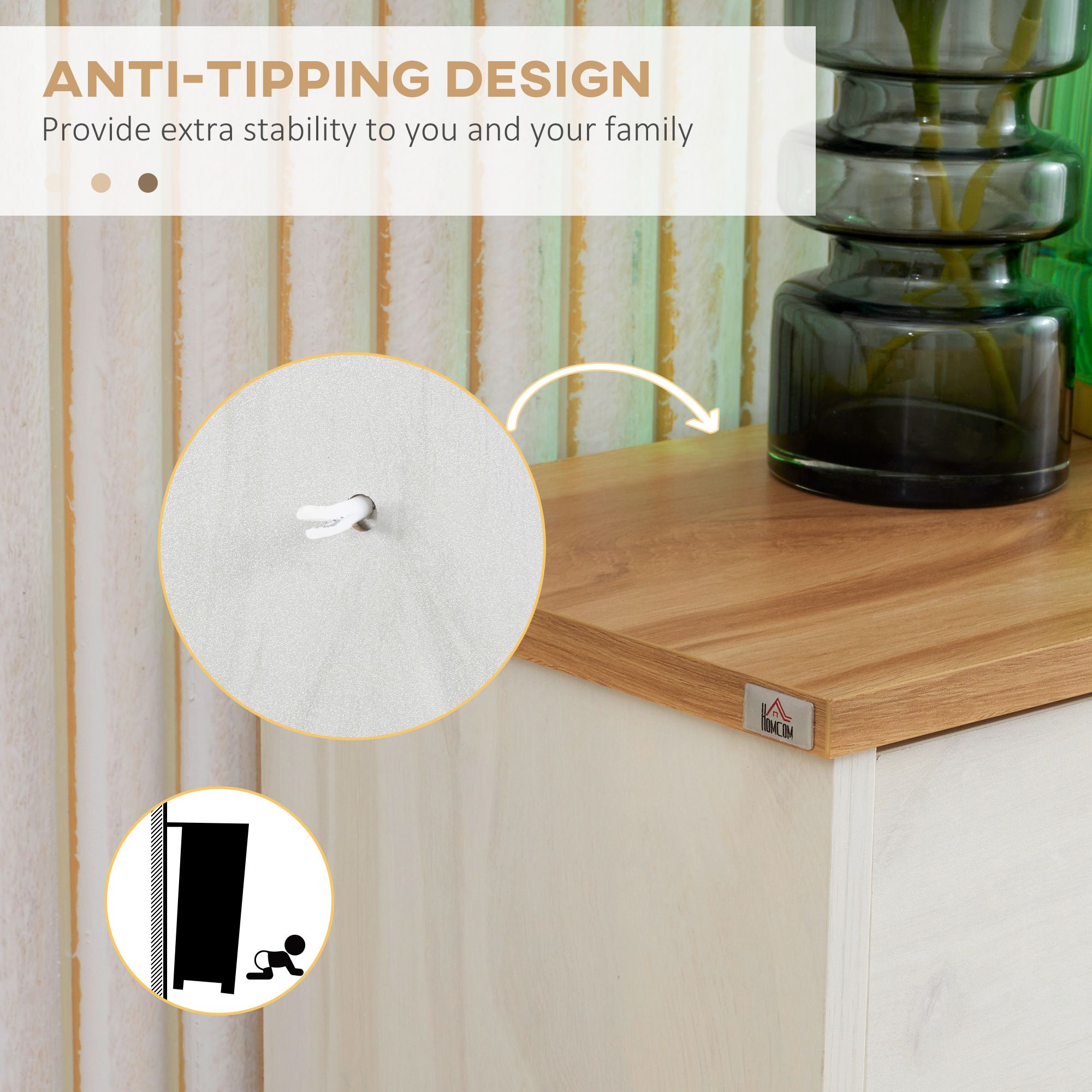 A shoe cupboard is a great way for keeping your home tidy of the smaller things. This HOMCOM piece is slim and narrow, so it can be used in plenty of smaller spaces. It comes with three flip-down drawers - each has a two-level adjustable shelf to fit differently-sized footwear. Made from particle board, this shoe storage cabinet can be used everyday, with the pine wood feet giving support. Comes with anti-tipping straps to attach to wall safely.