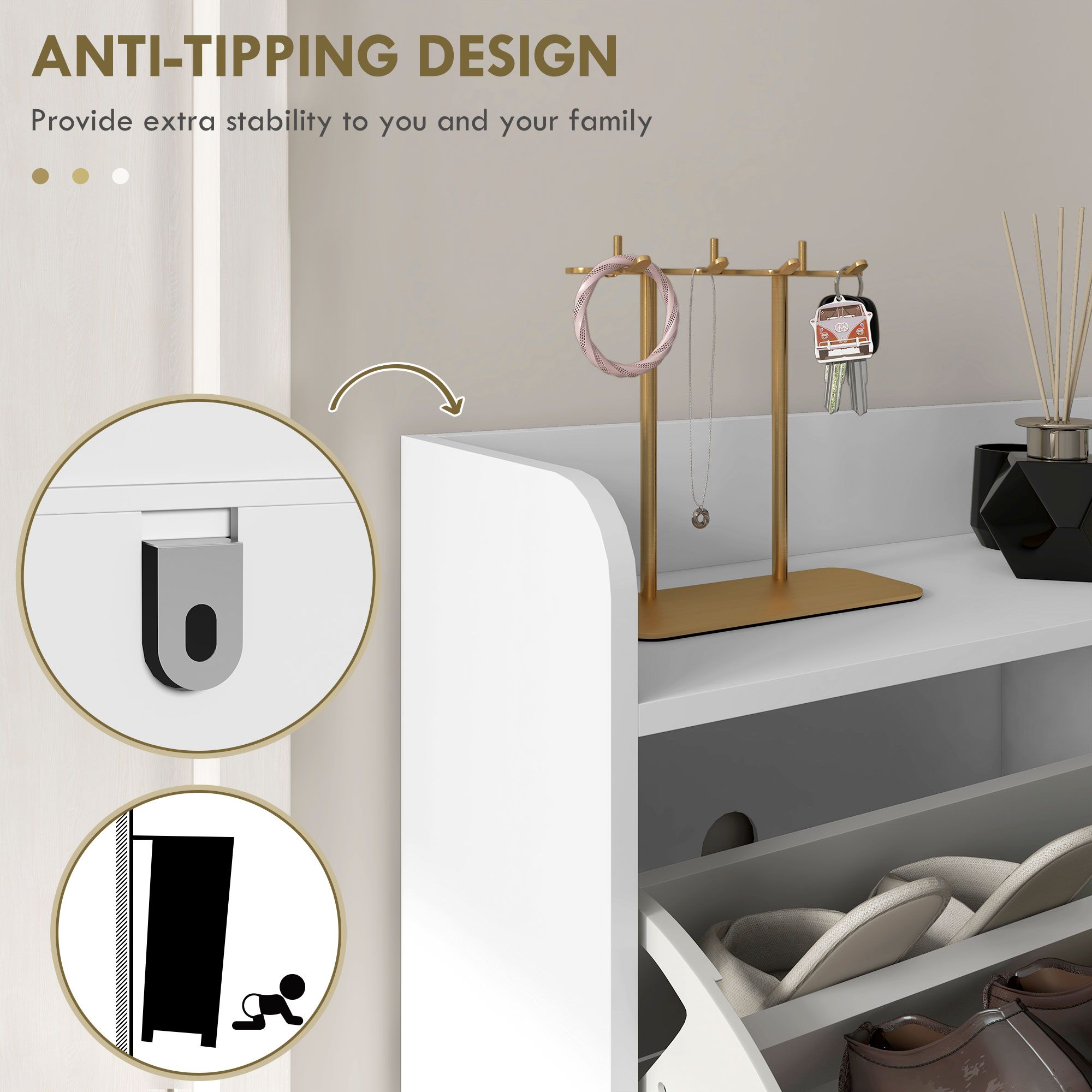 Narrow Shoe Storage Cabinet, Slim Shoe Cupboard with 4 Flip Drawers, Adjustable Shelf, Shoe Rack for 16 Pairs of Shoes
