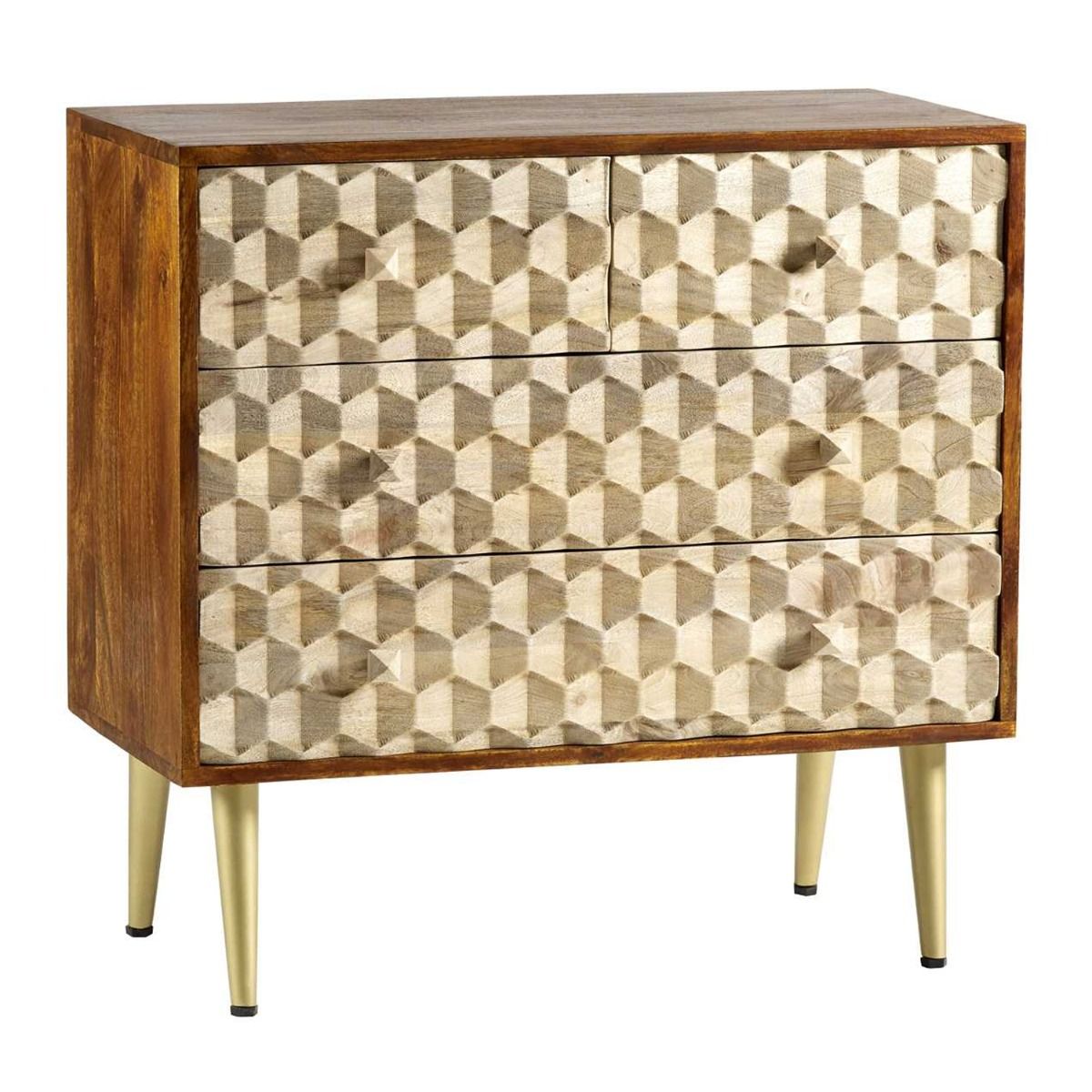 ELSPETH Natural Finish Chest of Drawers - Medium-sized, 4 Drawers, Ready Assembled