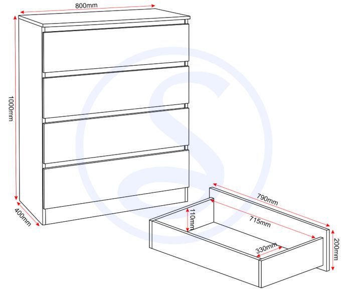 MALDEN Natural Finish Chest of Drawers - Medium-sized, 4 Drawers