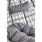 The NAVAGIO double black rattan effect hanging chair features plush grey cushions and a sleek black metal frame, with a round base. This double hanging chair has a wide seat that is crafted from black rattan effect and is furnished with dense foam filled grey cushions. The black metal frame complements the texture of the seat and offers stability with its round base.