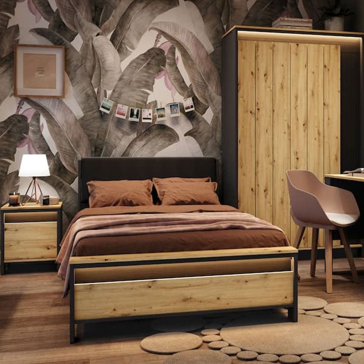 Elevate your bedroom with the Naxon Wing Small Double Size Bed Frame—a masterpiece of impeccable craftsmanship. This stunning bed boasts a rustic, vintage style that instantly infuses an uniquely industrial charm into your space. The exquisite Oak Artisan front, paired with a black matte carcass, adds timeless elegance that complements any decor. Crafted from durable 16mm laminated board, this bed ensures long-lasting durability and abrasion resistance. Assemble your dream retreat with this exceptional bed frame that combines style and sturdiness.