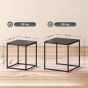 Style made simple with these two nesting tables from. Black in colour, square in shape, they're an easy way to display your favourite pieces in the home of office - letting them stand out and shine. The frame, made from steel for a strong core, is fitted with a tempered glass table top; safely tough so it doesn't break, also gives both tables a sleek and polished look. Set consists of a smaller and larger tables, so when not in use, can be snuggly fitted together, keeping your house tidy.