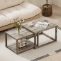 Nesting Coffee Table Set of 2 with Storage Shelf and Rubber Wood Frame-Grey