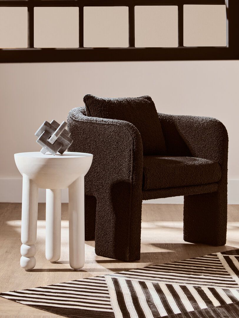 NETHWYN Boucle Fabric Curved Armchair - Black