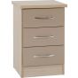 Nevada 3 Drawer Bedside - Oyster Gloss Light Oak Effect Veneer