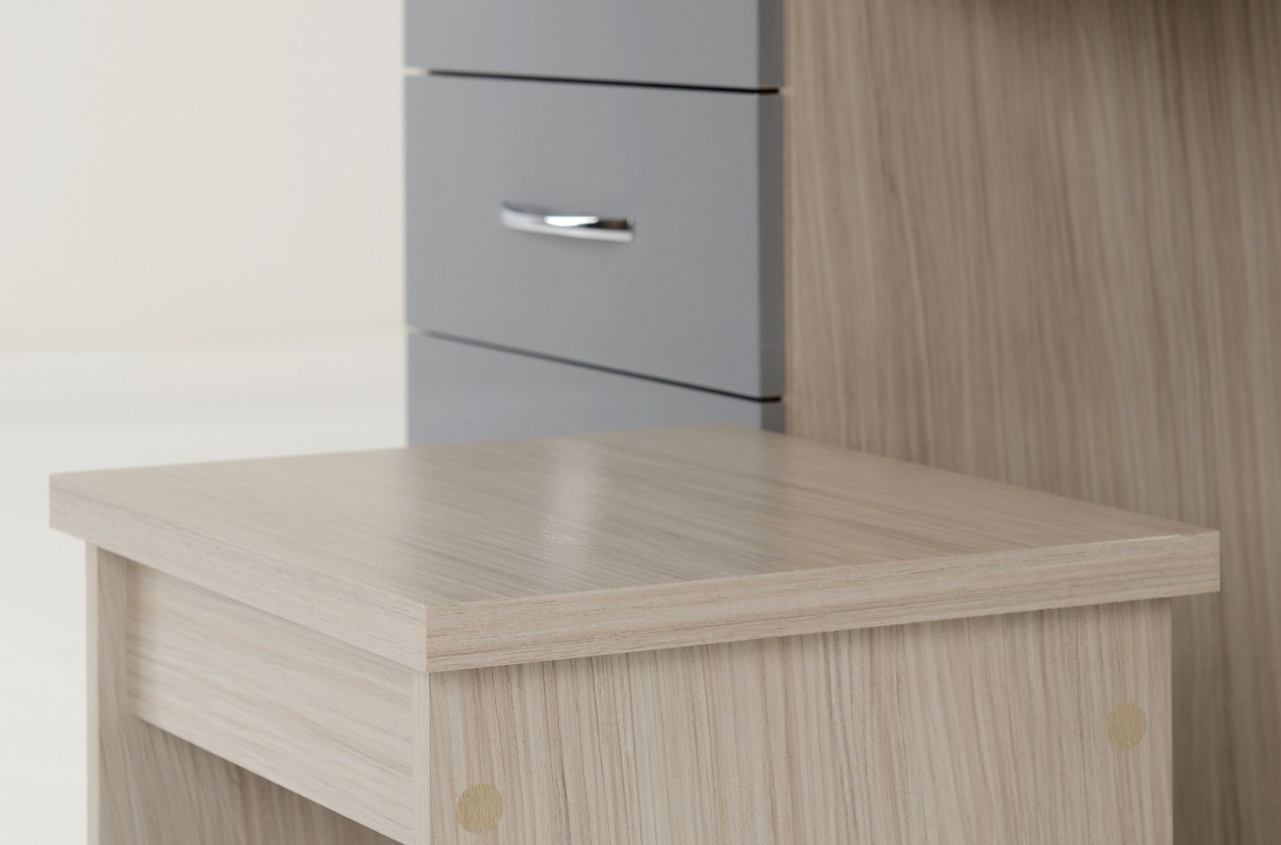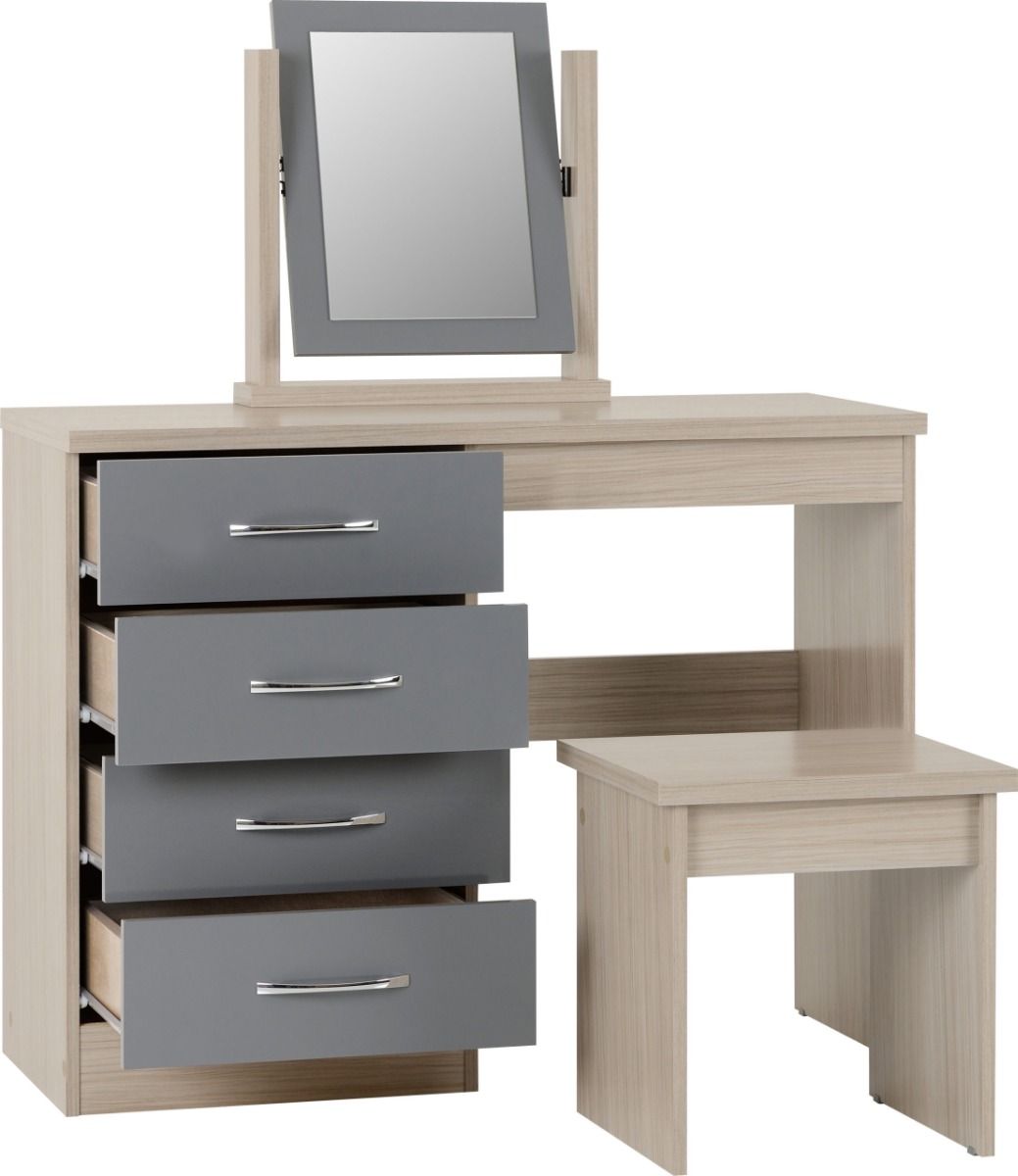 Nevada 4 Drawer Dressing Table Set - Grey Gloss Light Oak Effect Veneer