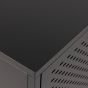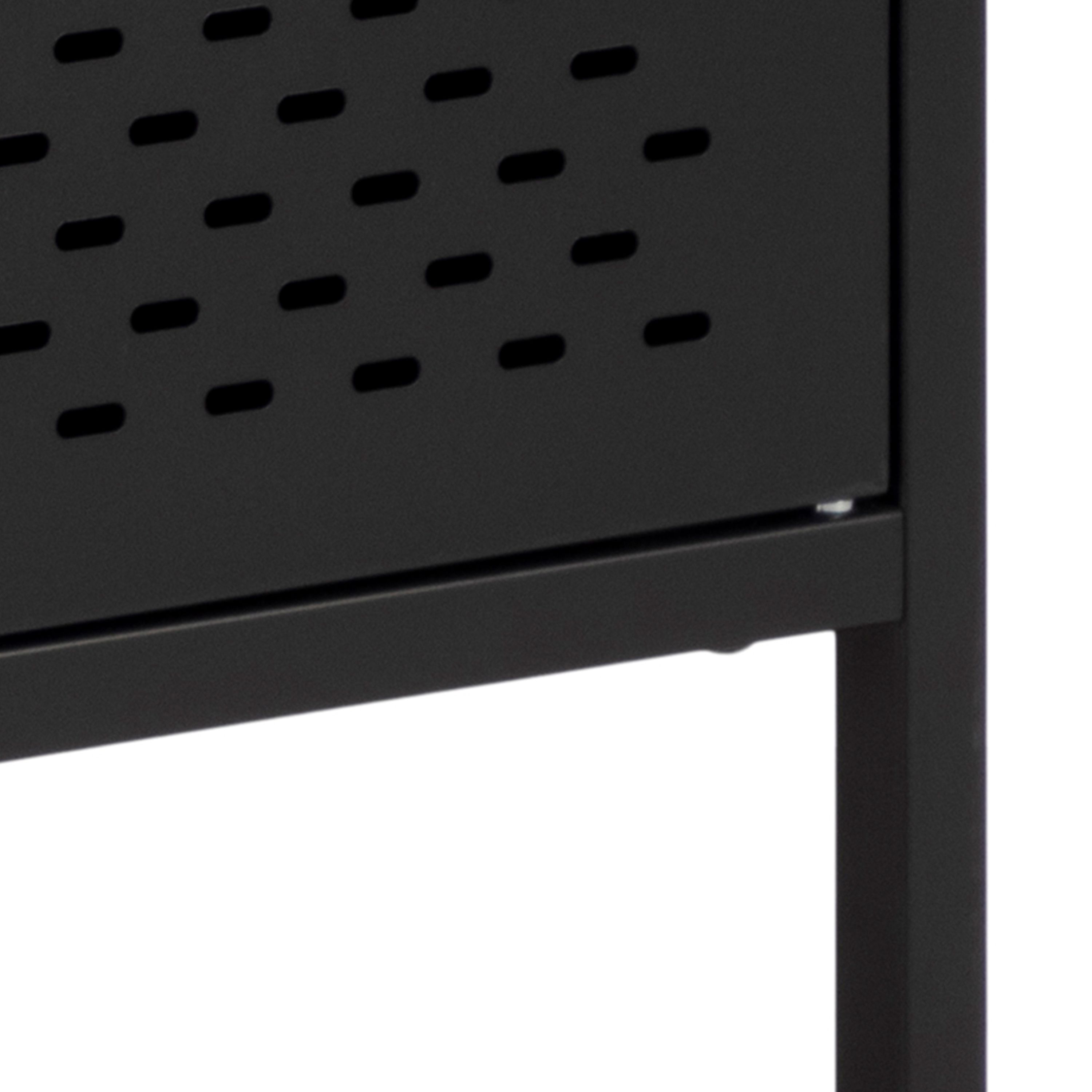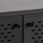 This sideboard ia a modern addition to your home. Crafted with a top, frame, 3 doors, 2 shelves, and base in matt black rough powder-coated steel, it exudes industrial chic. Featuring metal mesh details, this sideboard adds both style and functionality to any space.