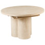This chic round dining table effortlessly blends into any dining room or kitchen. Made from sturdy MDF with a soft light brown stone like finish, it adds a welcoming touch to your space. The table includes an extendable butterfly leaf top, perfect for accommodating extra guests during family gatherings, and a wide pedestal base for extra support. A great choice for modern or minimalist interiors.