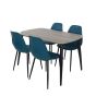 NEXO Rectangular Dining Table with 4 Curve Plastic Chairs - Grey Oak with Blue