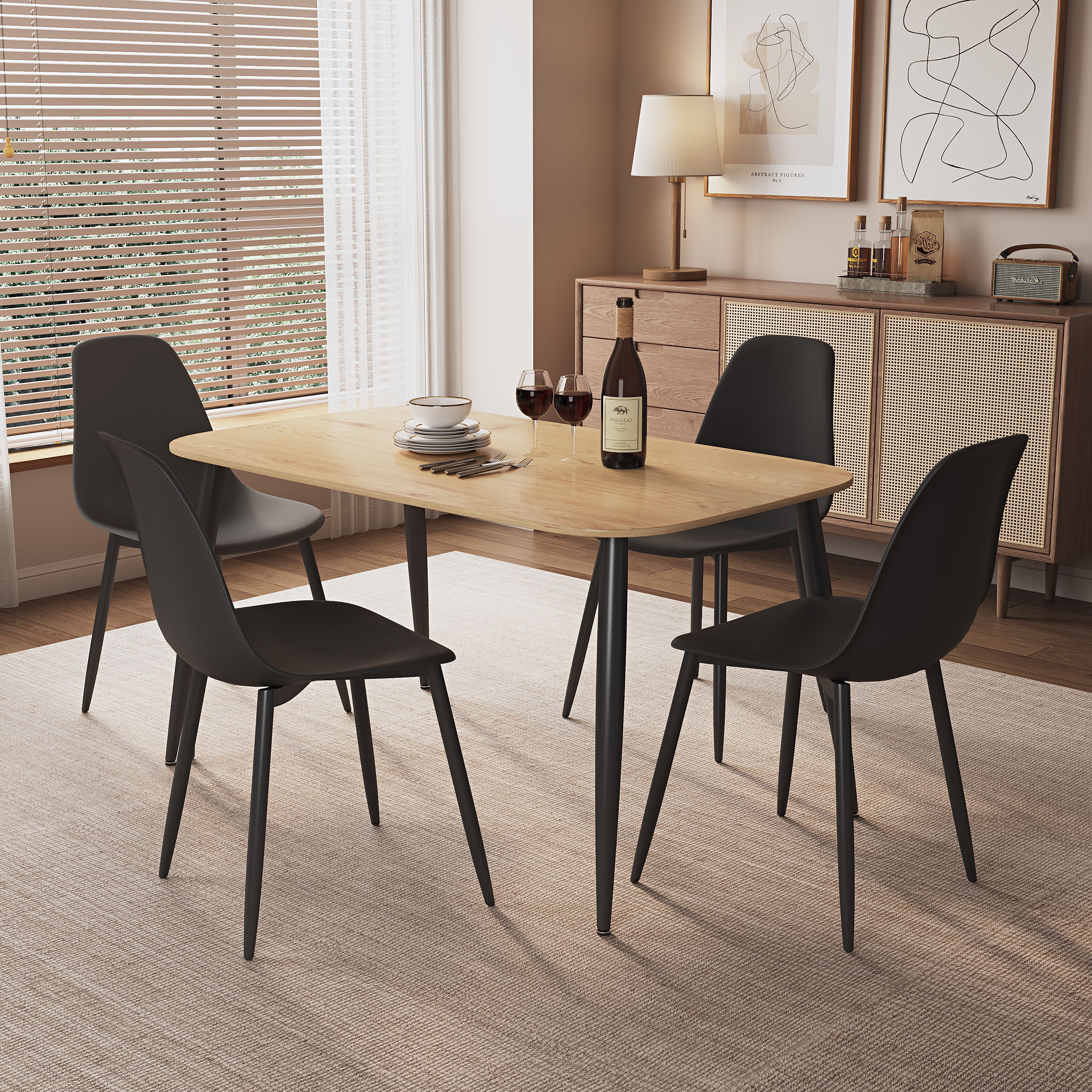NEXO Rectangular Dining Table with 4 Curve Plastic Chairs - Light Oak with Black