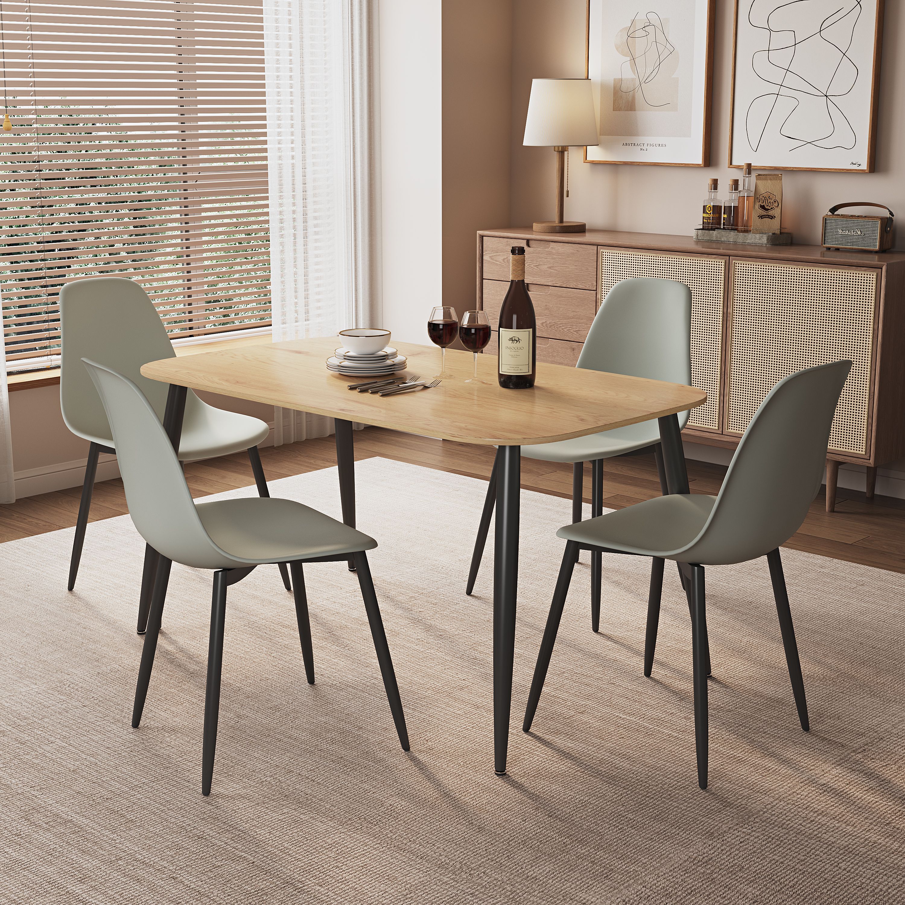 NEXO Rectangular Dining Table with 4 Curve Plastic Chairs - Light Oak with Grey