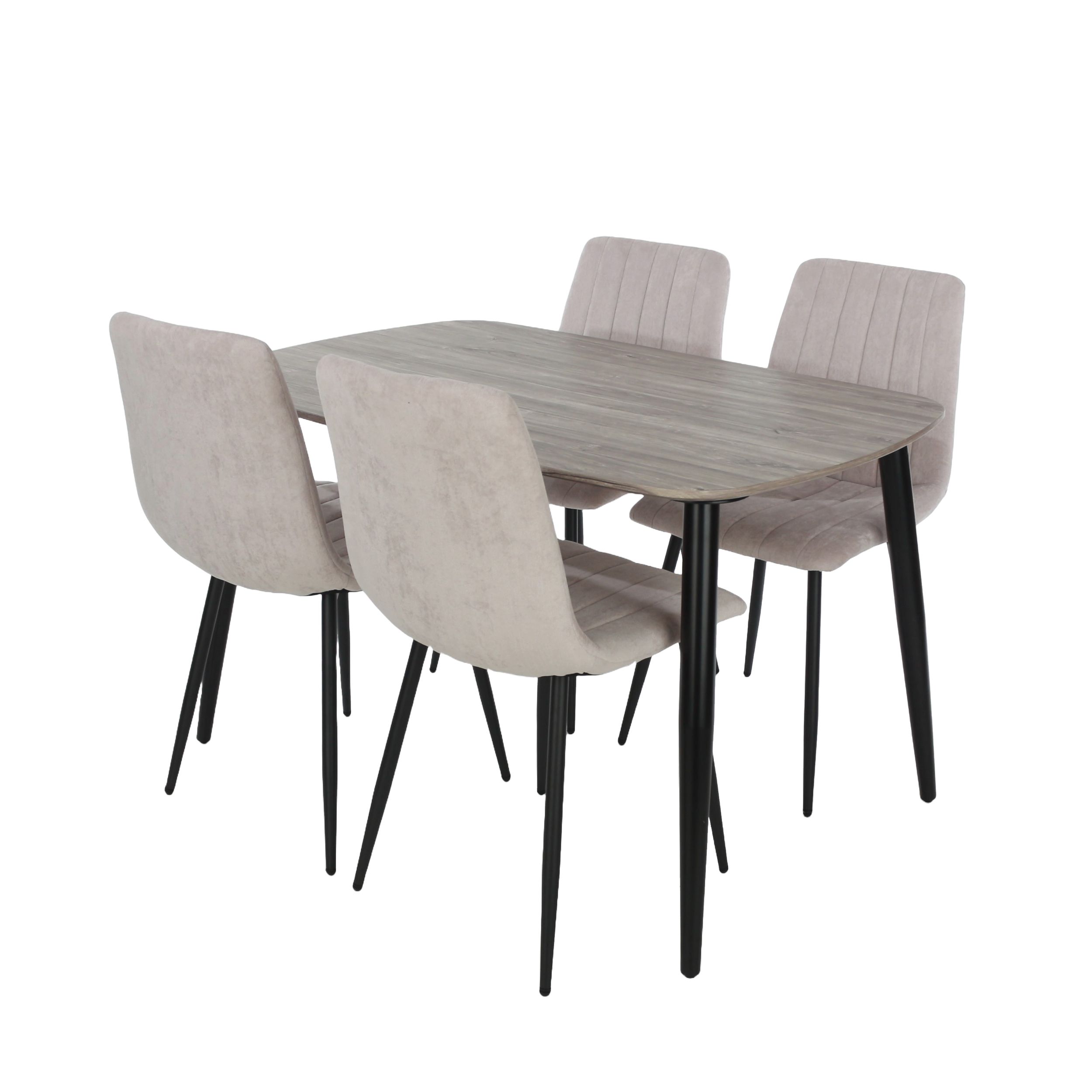 NEXO Rectangular Dining Table with 4 Straight Stitch Fabric Chairs - Grey Oak with Natural