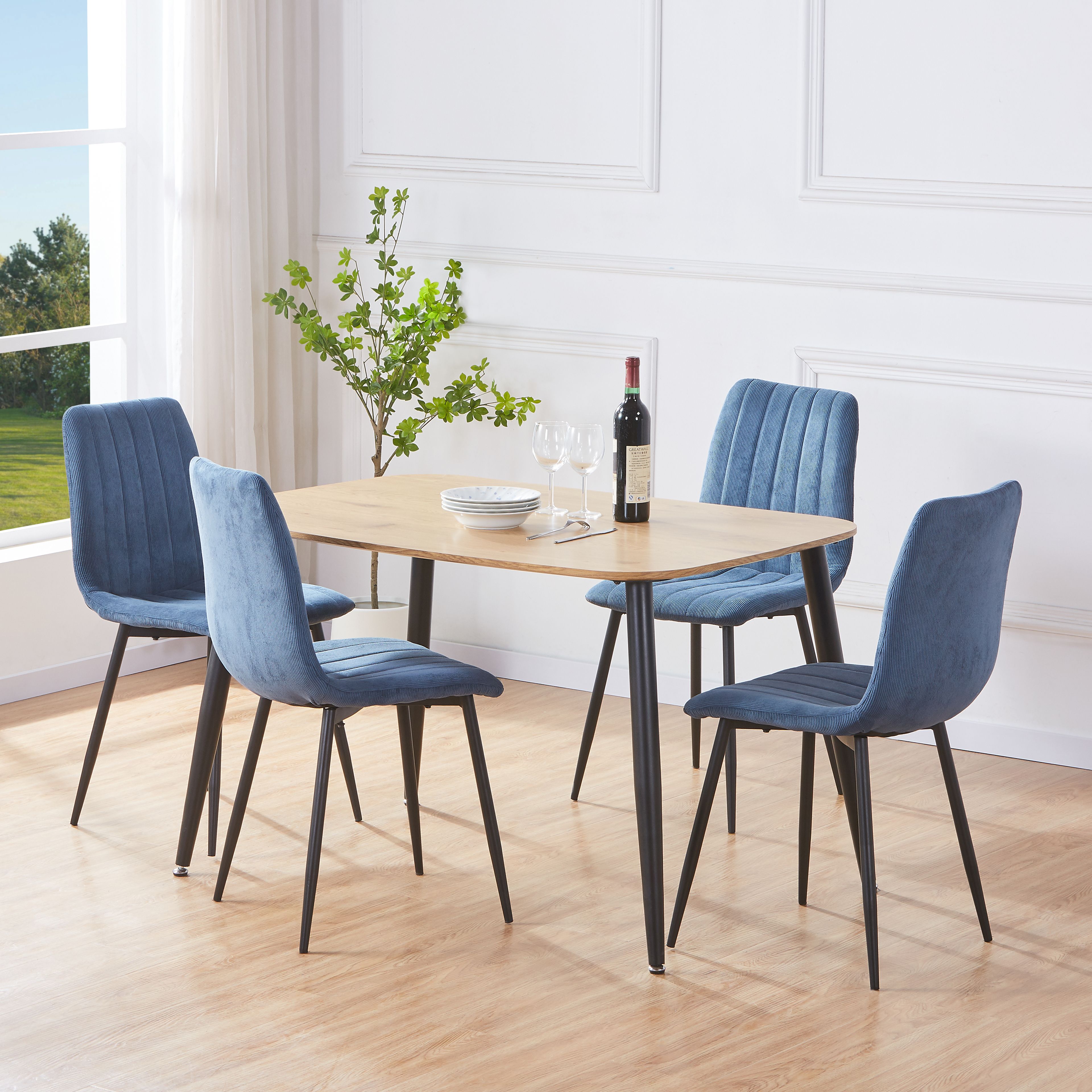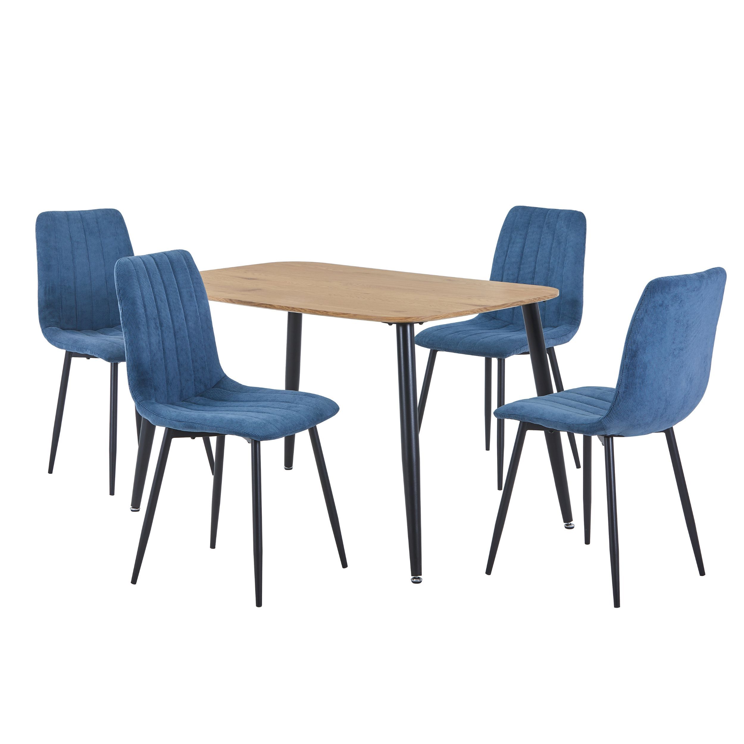 NEXO Rectangular Dining Table with 4 Straight Stitch Fabric Chairs - Light Oak with Blue