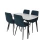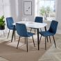 NEXO Rectangular Dining Table with 4 Straight Stitch Fabric Chairs - White with Blue