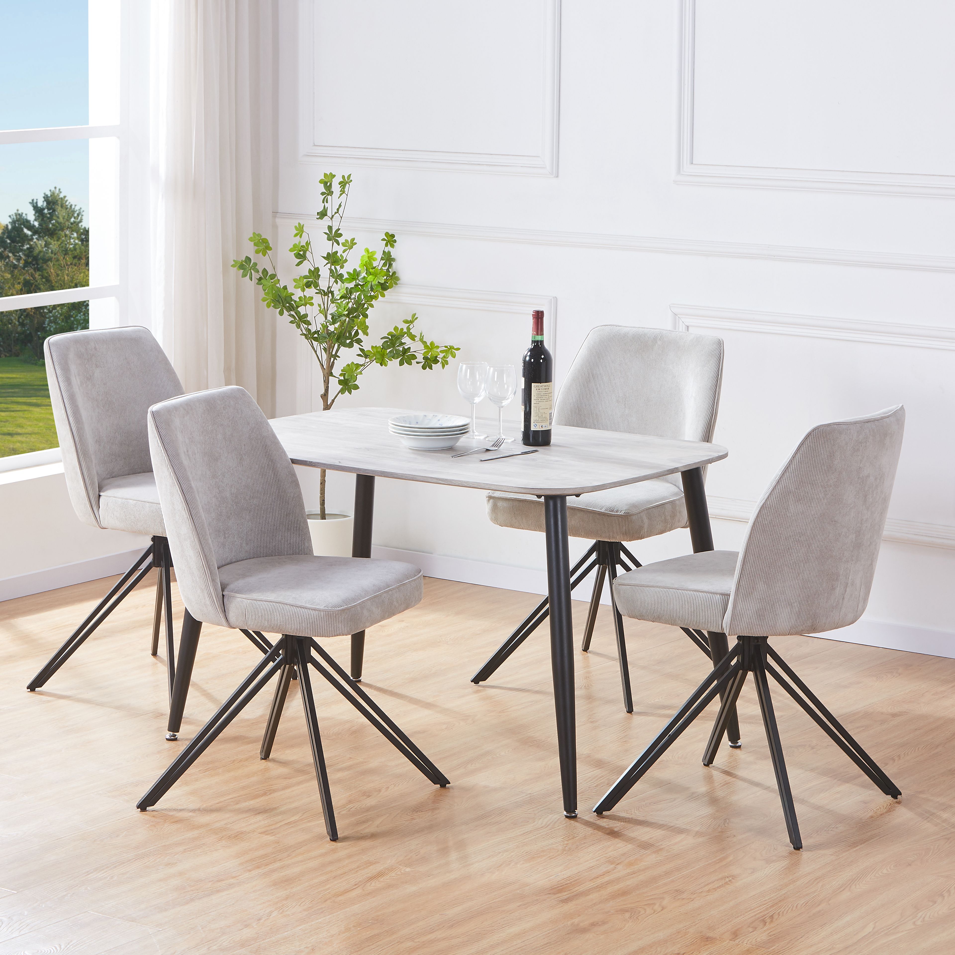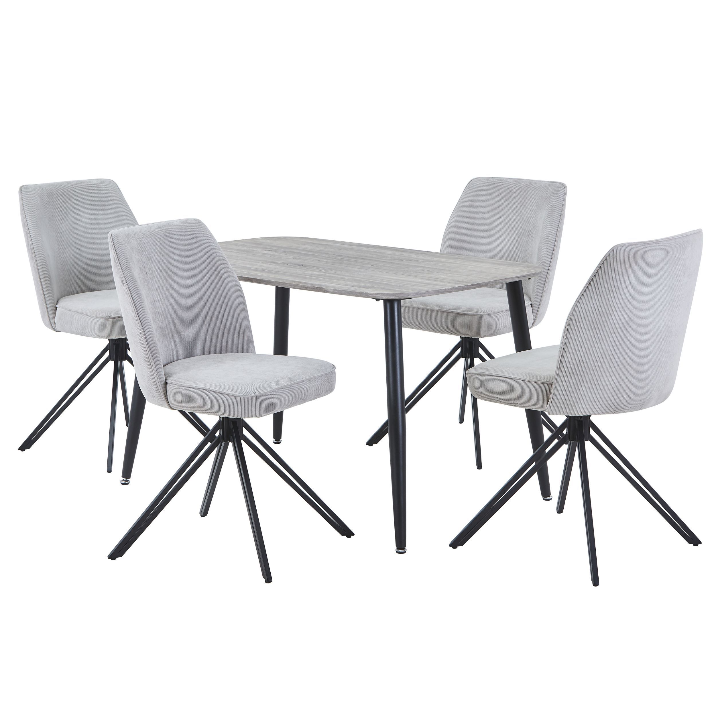 NEXO Rectangular Dining Table with 4 Swivel Fabric Chairs - Grey Oak with Light Grey