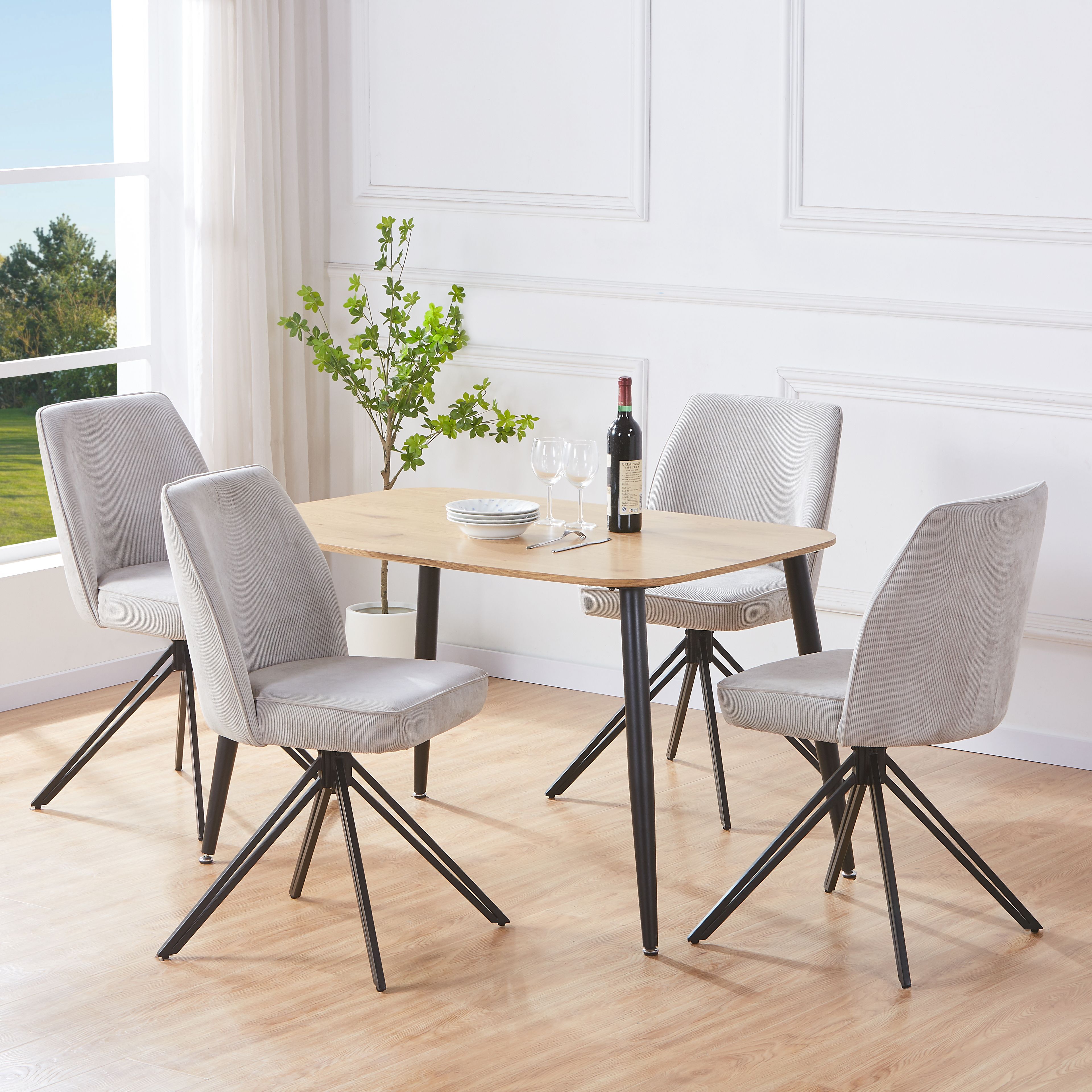 NEXO Rectangular Dining Table with 4 Swivel Fabric Chairs - Light Oak with Light Grey
