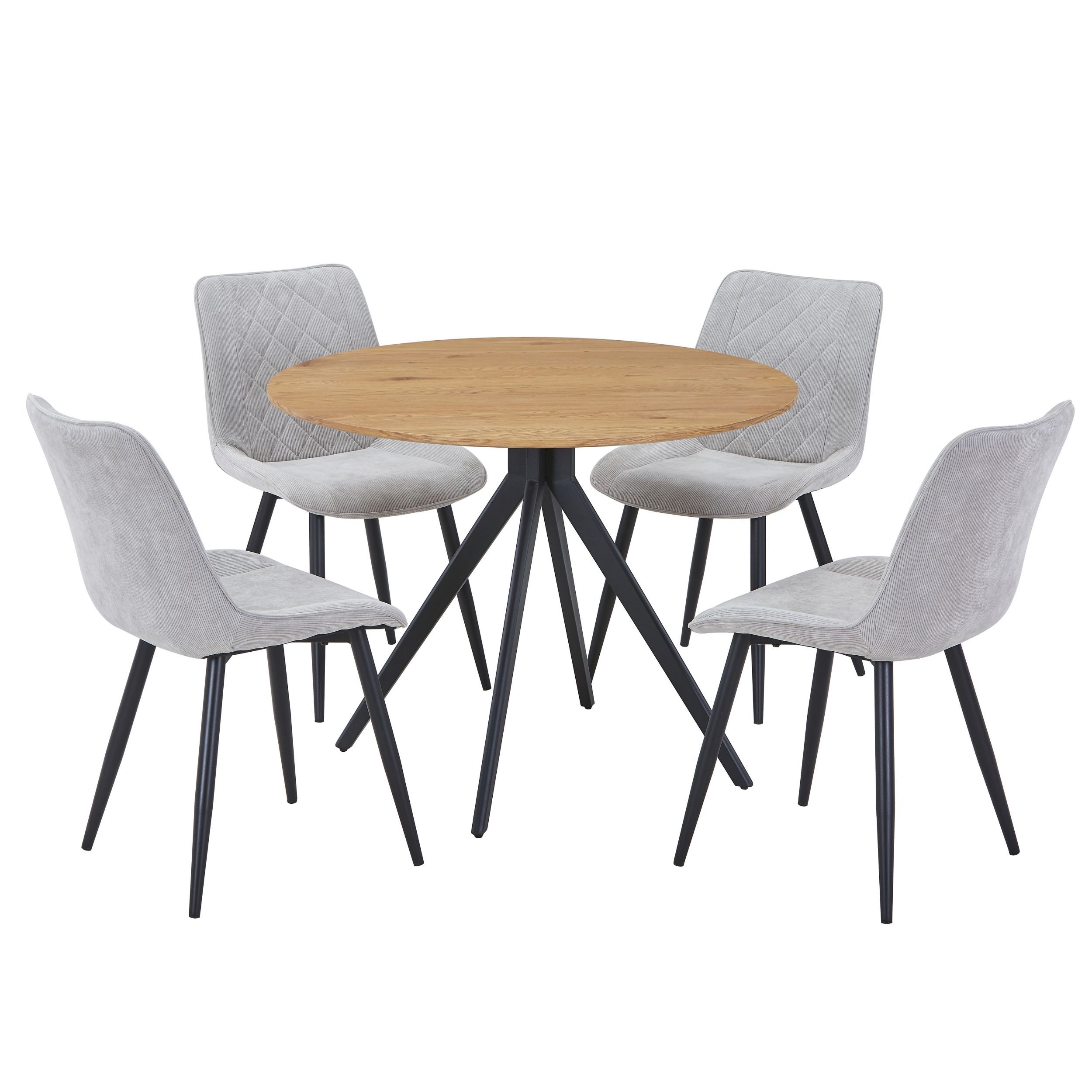 NEXO Round Dining Table with 4 Cord Diamond Stitch Fabric Chairs - Light Oak with Light Grey
