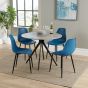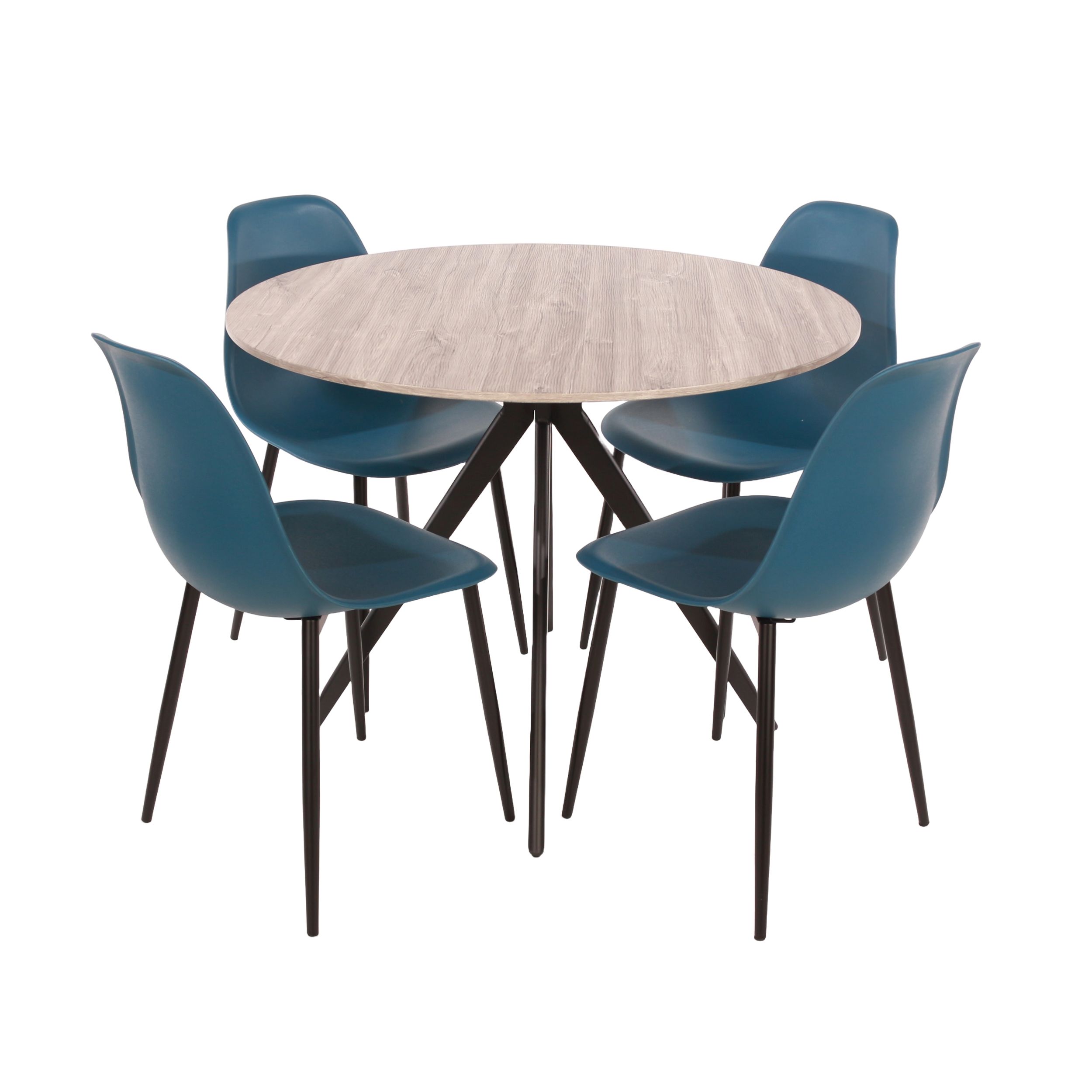 NEXO Round Dining Table with 4 Curve Plastic Chairs - Grey Oak with Blue
