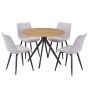 NEXO Round Dining Table with 4 Diamond Stitch Fabric Chairs - Light Oak with Natural