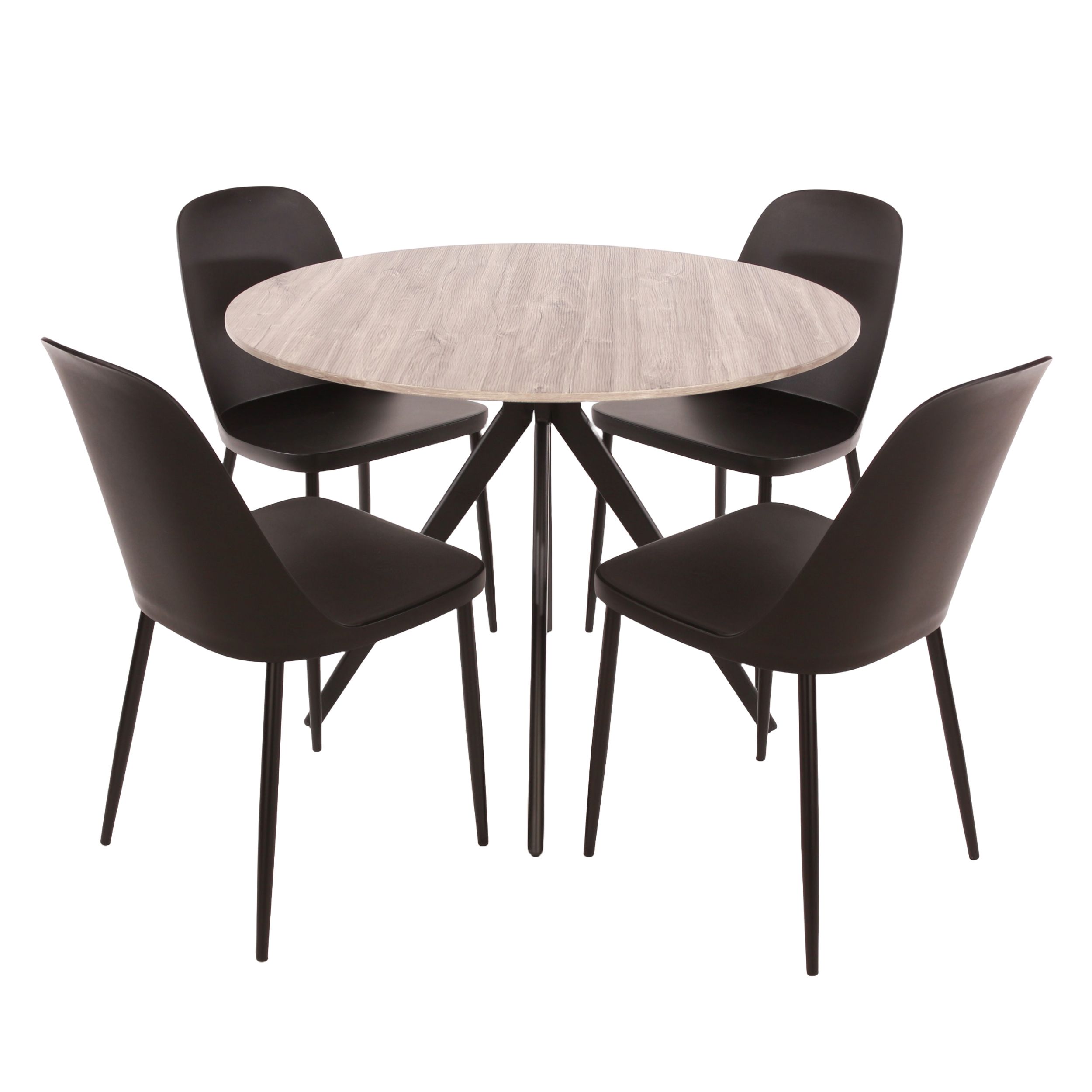 NEXO Round Dining Table with 4 Duo Plastic Chairs - Grey Oak with Black