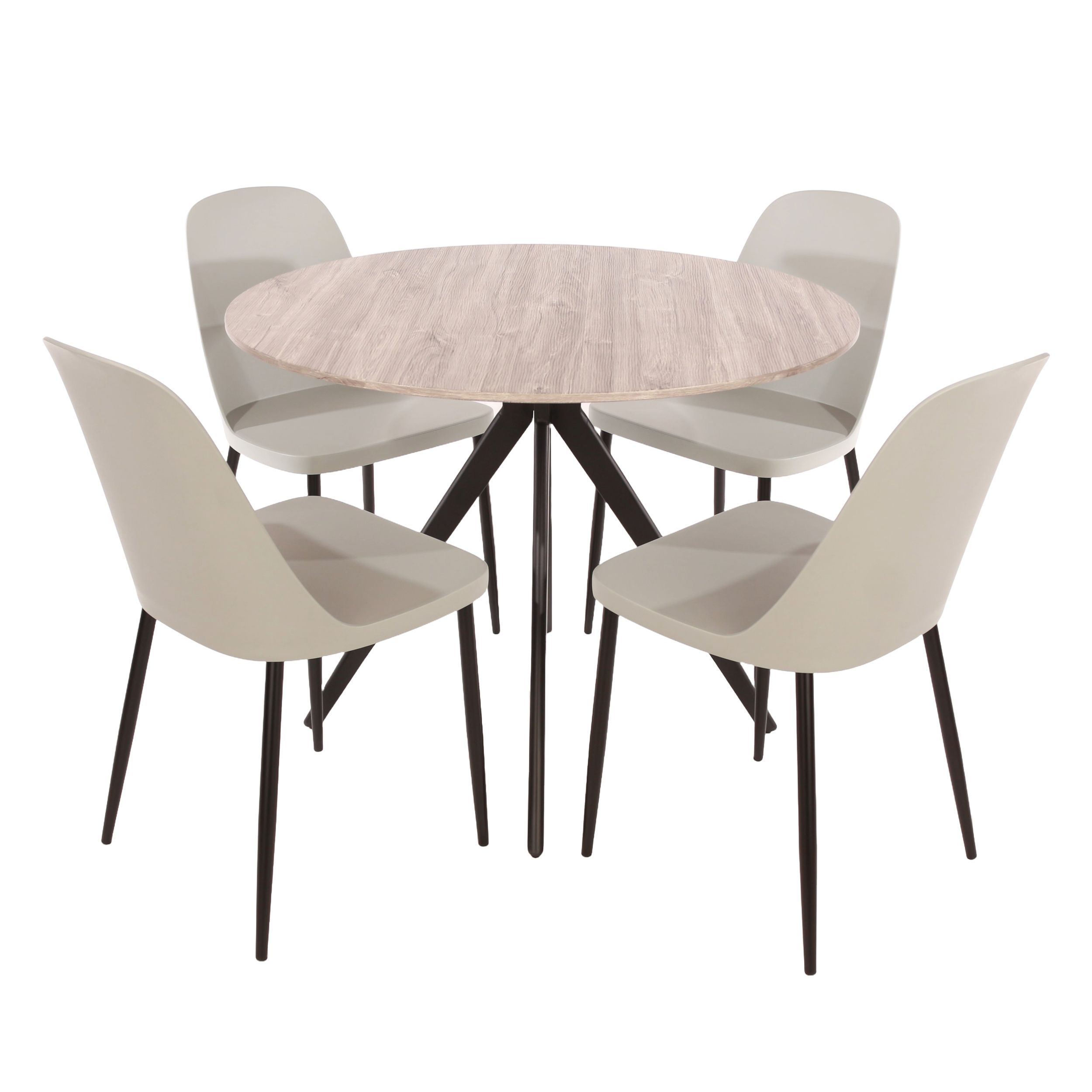 NEXO Round Dining Table with 4 Duo Plastic Chairs - Grey Oak with Grey