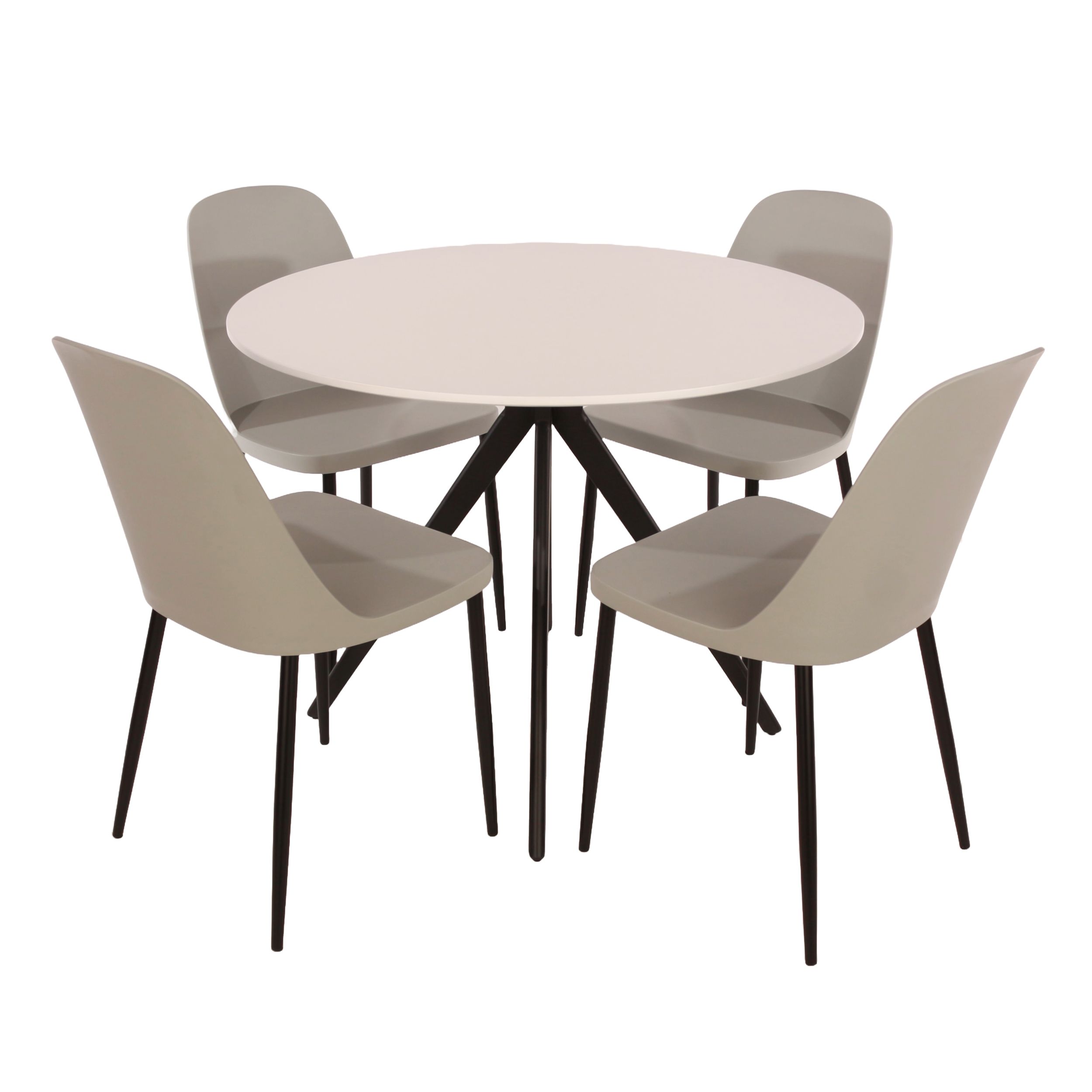 NEXO Round Dining Table with 4 Duo Plastic Chairs - White with Grey