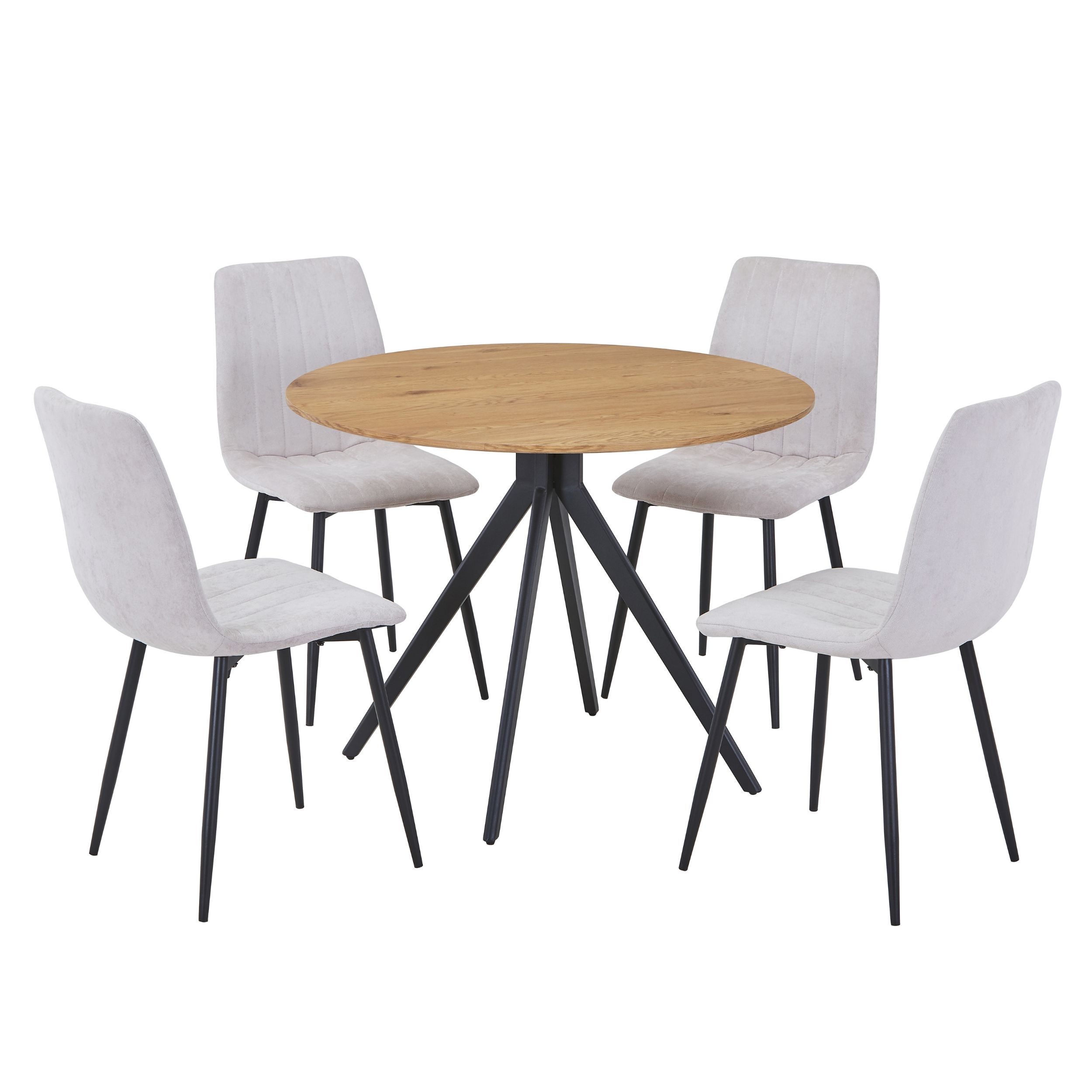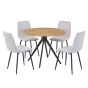 NEXO Round Dining Table with 4 Straight Stitch Fabric Chairs - Light Oak with Natural