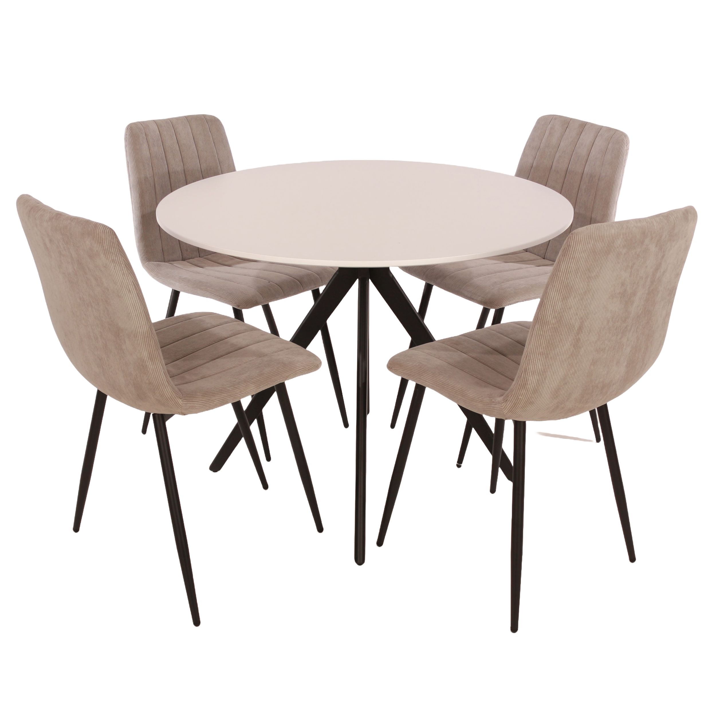 NEXO Round Dining Table with 4 Straight Stitch Fabric Chairs - White with Light Grey
