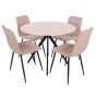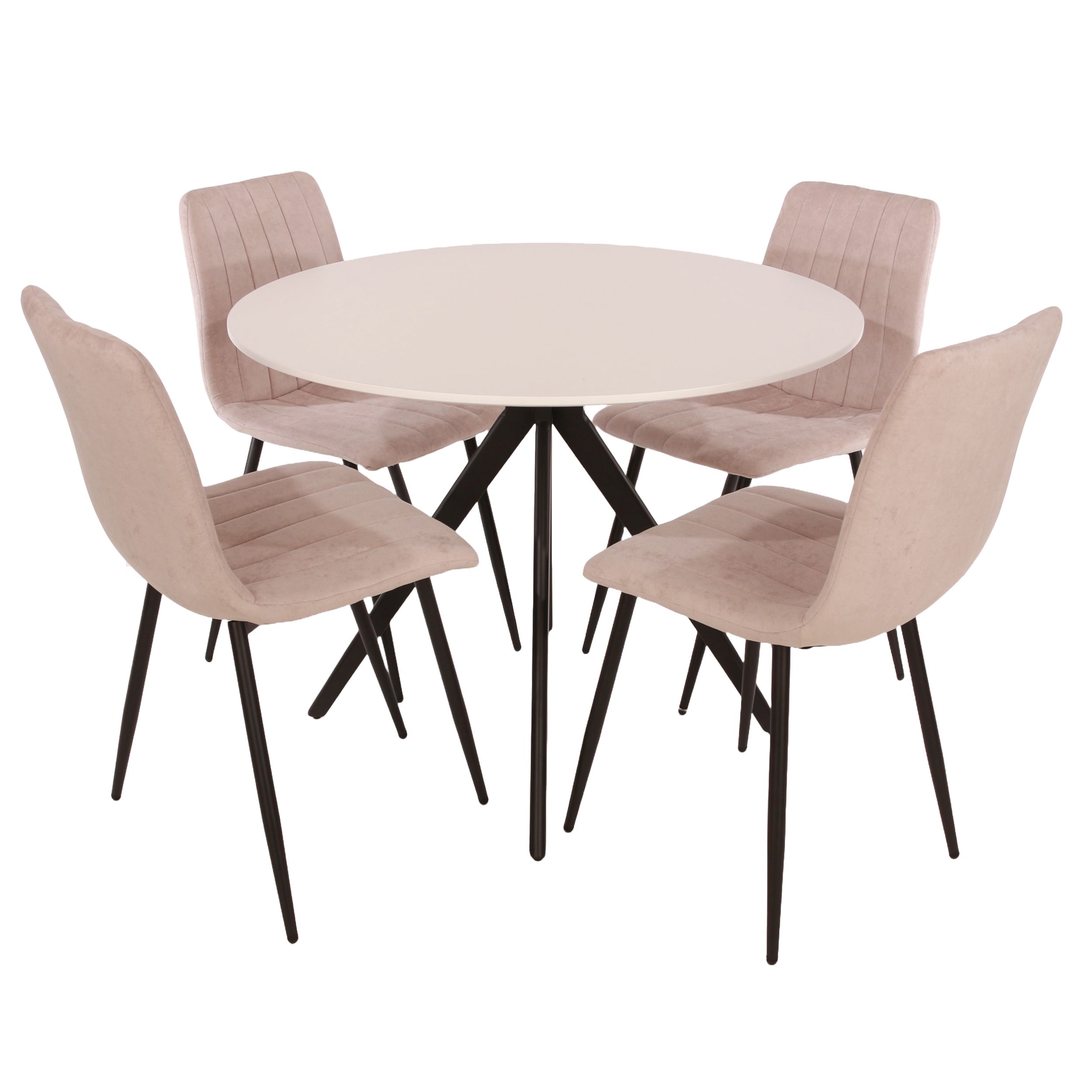NEXO Round Dining Table with 4 Straight Stitch Fabric Chairs - White with Natural
