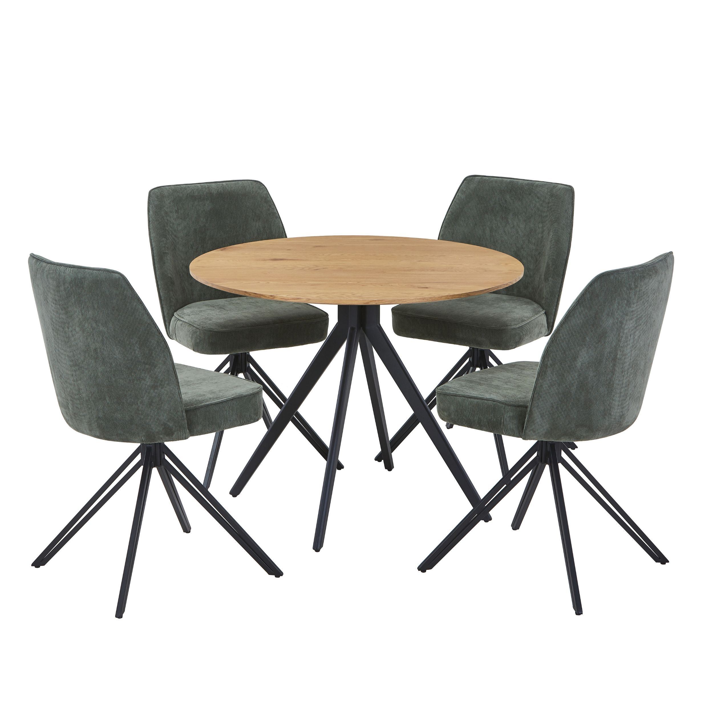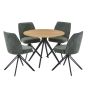 NEXO Round Dining Table with 4 Swivel Fabric Chairs - Light Oak with Green