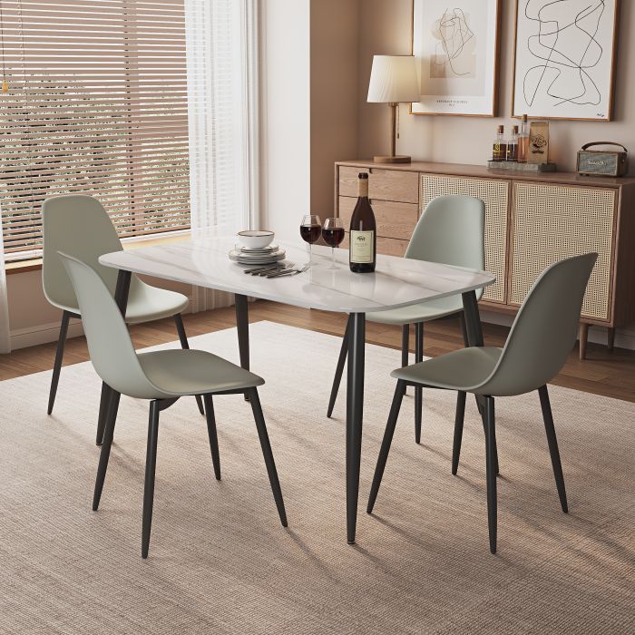 NEXO Sintered Stone Rectangular Dining Table with 4 Curve Chairs - Gloss White with Grey