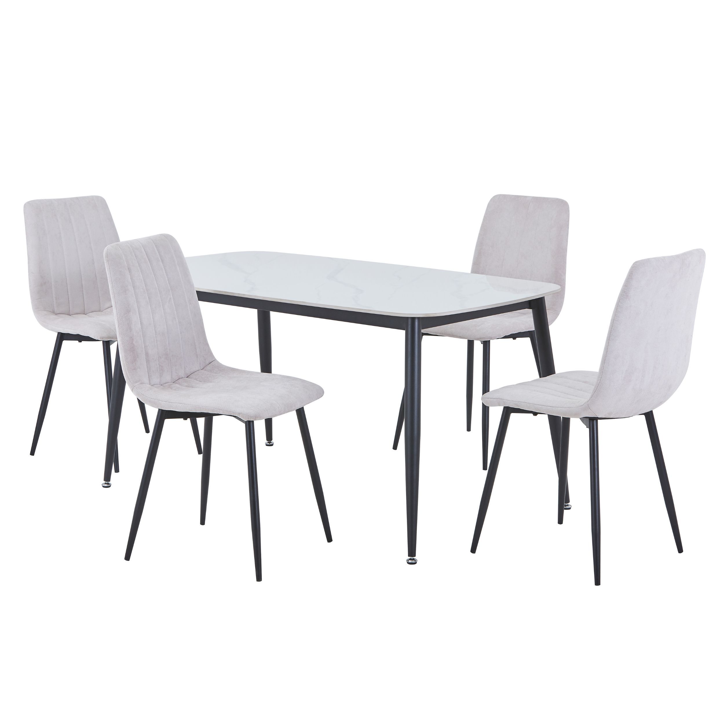 NEXO Sintered Stone Rectangular Dining Table with 4 Straight Stitch Fabric Chairs - Gloss White with Natural