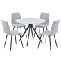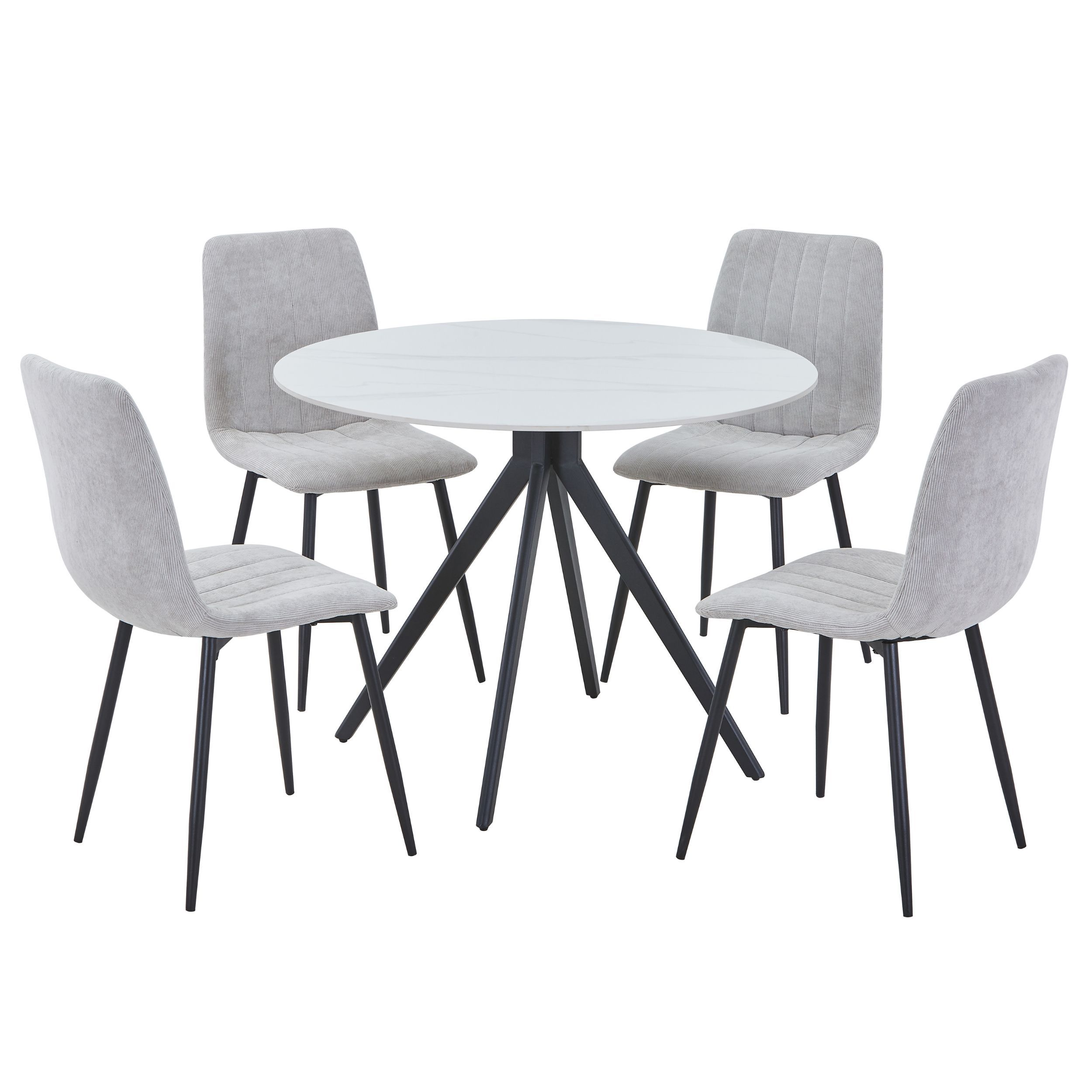 NEXO Sintered Stone Round Dining Table with 4 Cord Straight Stitch Fabric Chairs - Gloss White with Light Grey