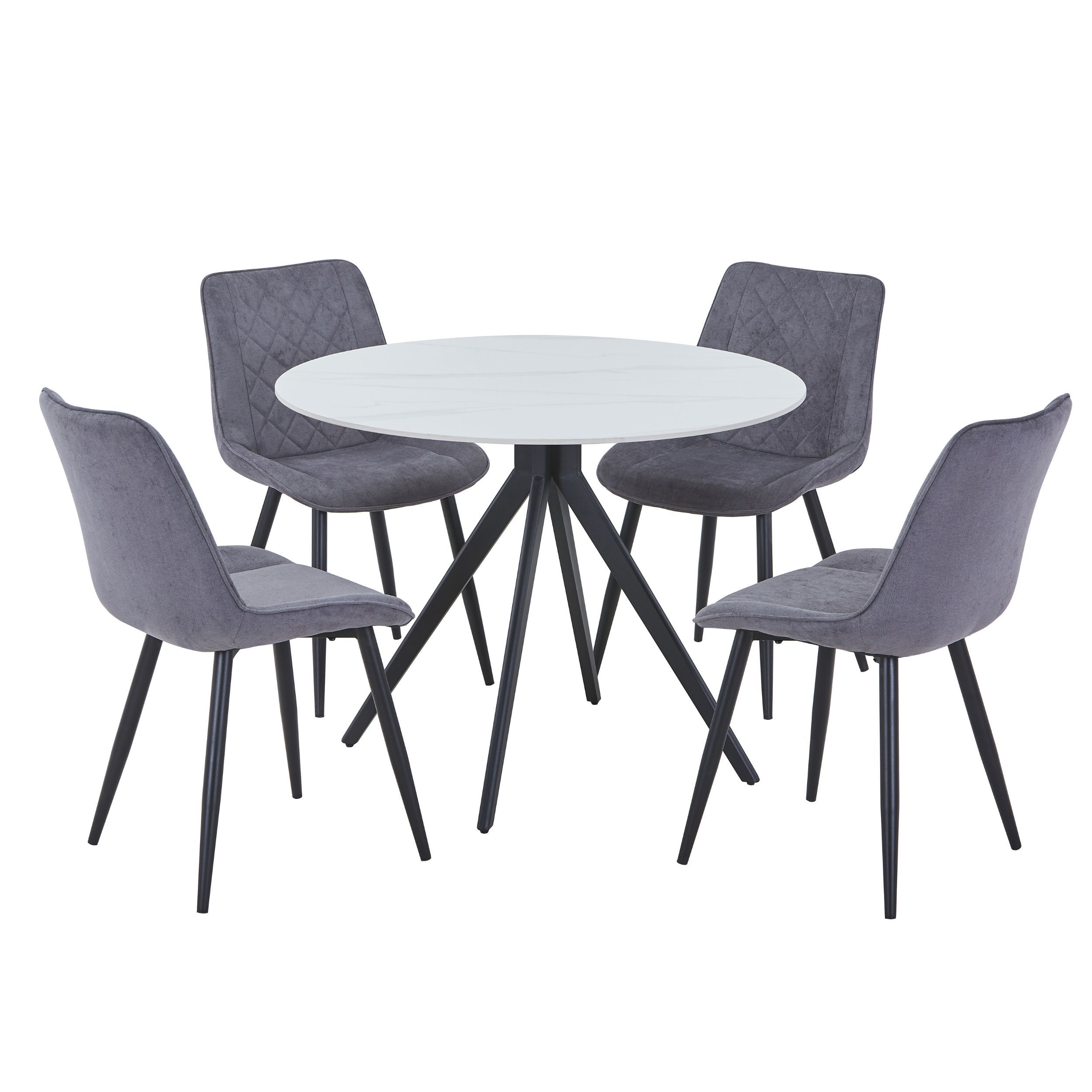 NEXO Sintered Stone Round Dining Table with 4 Diamond Stitch Fabric Chairs - Gloss White with Grey