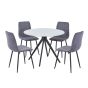 NEXO Sintered Stone Round Dining Table with 4 Straight Stitch Fabric Chairs - Gloss White with Grey