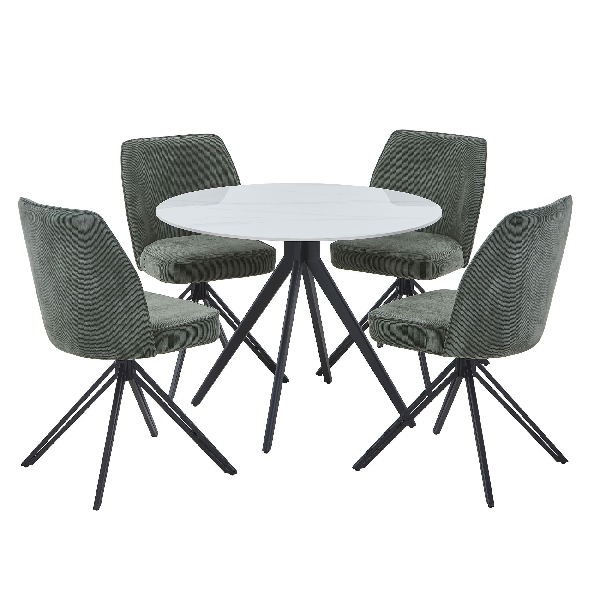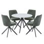NEXO Sintered Stone Round Dining Table with 4 Swivel Fabric Chairs - Gloss White with Green