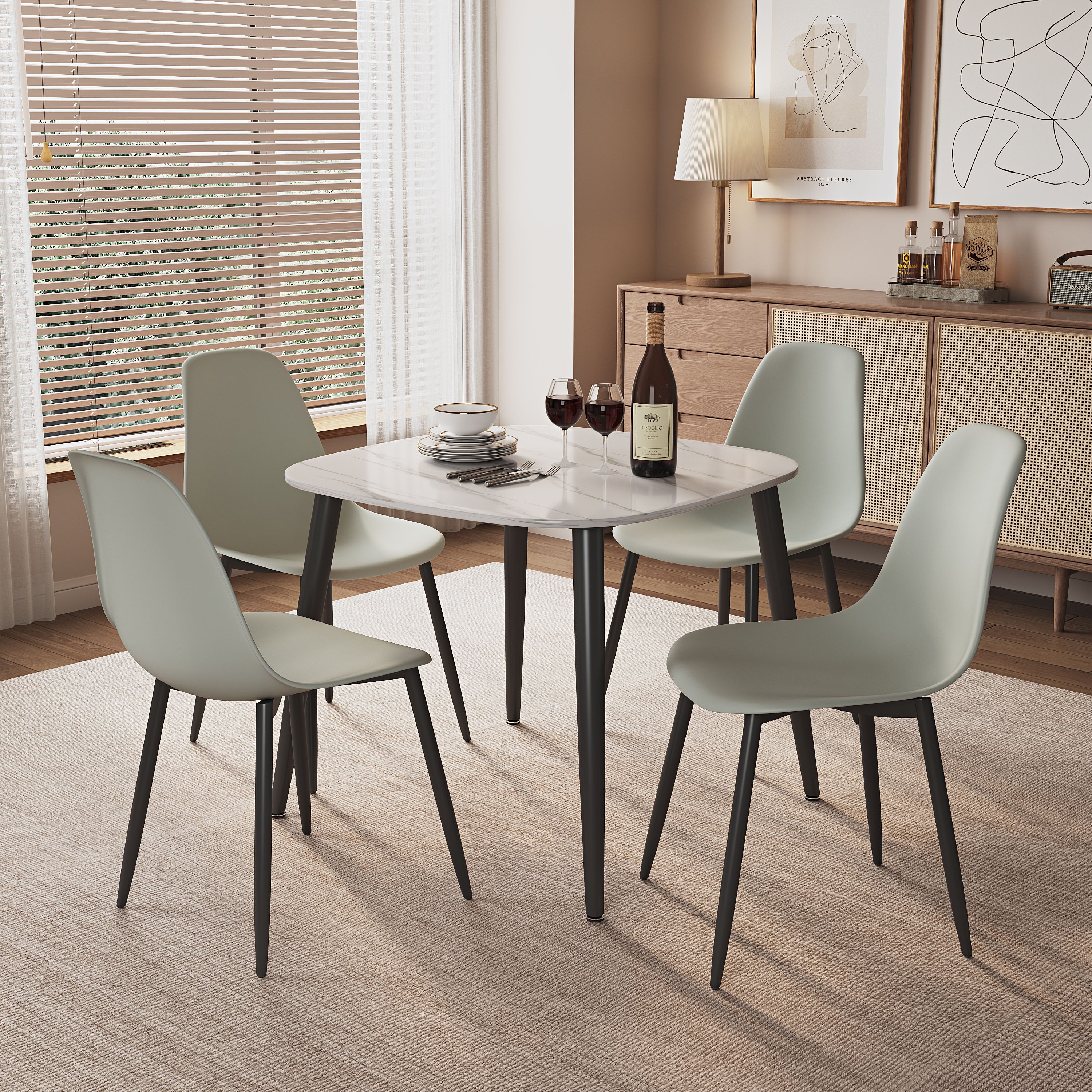 NEXO Sintered Stone Square Dining Table with 4 Chairs - Gloss White with Grey