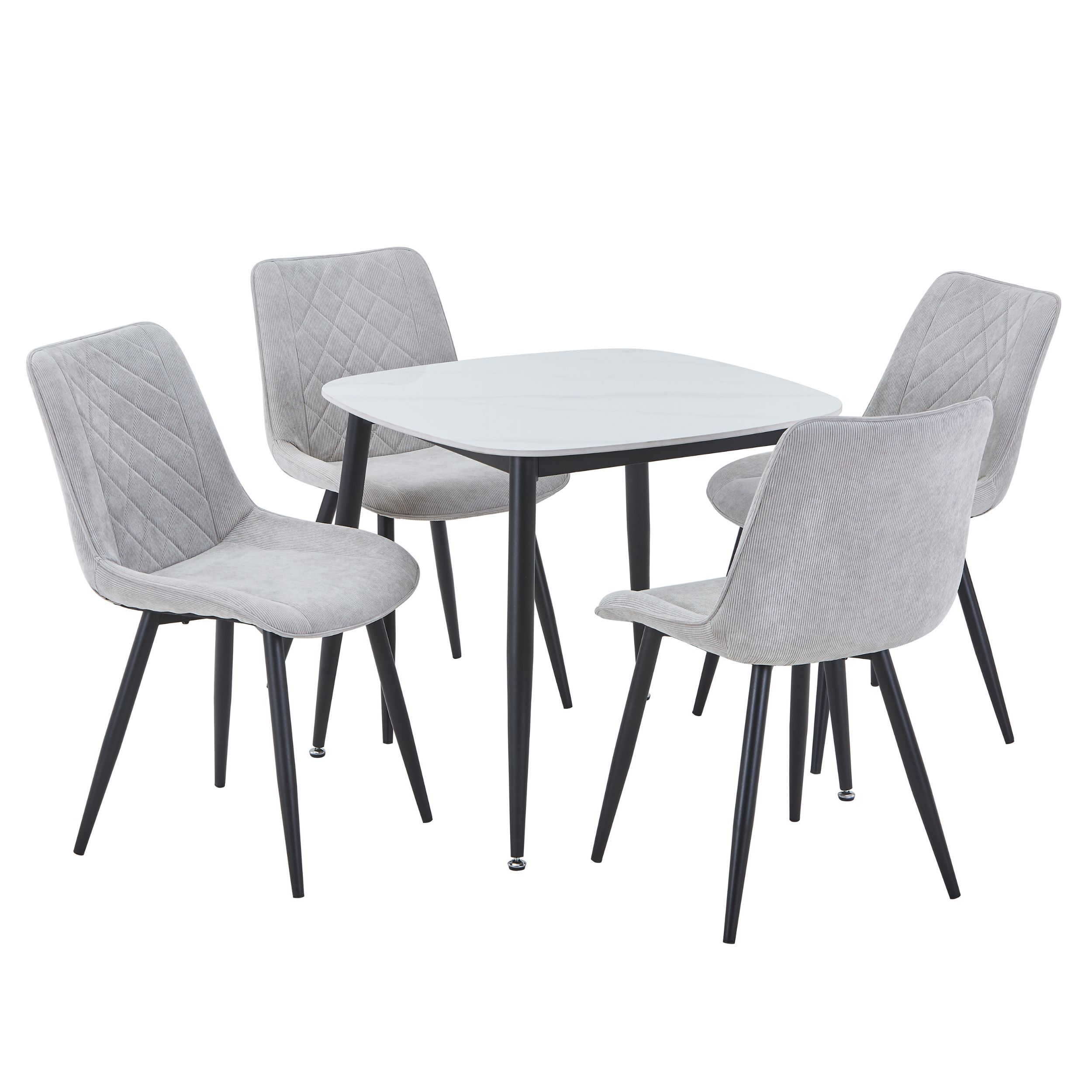 NEXO Sintered Stone Square Dining Table with 4 Cord Diamond Stitch Fabric Chairs - Gloss White with Light Grey