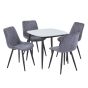NEXO Sintered Stone Square Dining Table with 4 Diamond Stitch Fabric Chairs - Gloss White with Grey