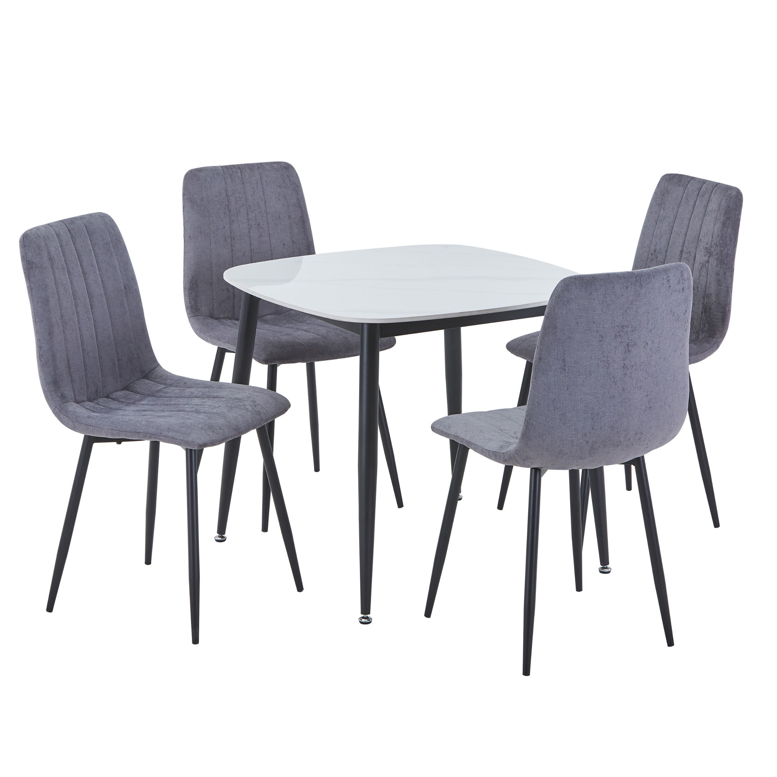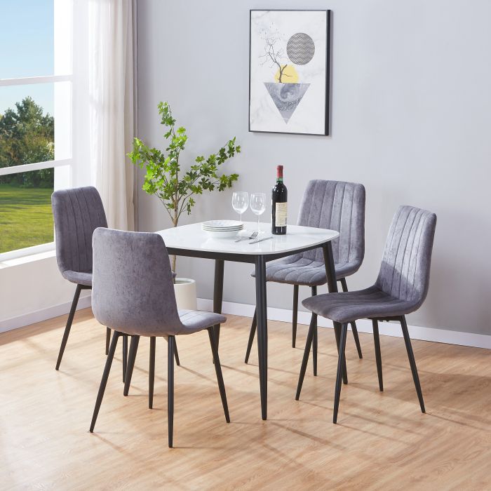 NEXO Sintered Stone Square Dining Table with 4 Straight Stitch Fabric Chairs - Gloss White with Grey