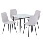 NEXO Sintered Stone Square Dining Table with 4 Straight Stitch Fabric Chairs - Gloss White with Natural