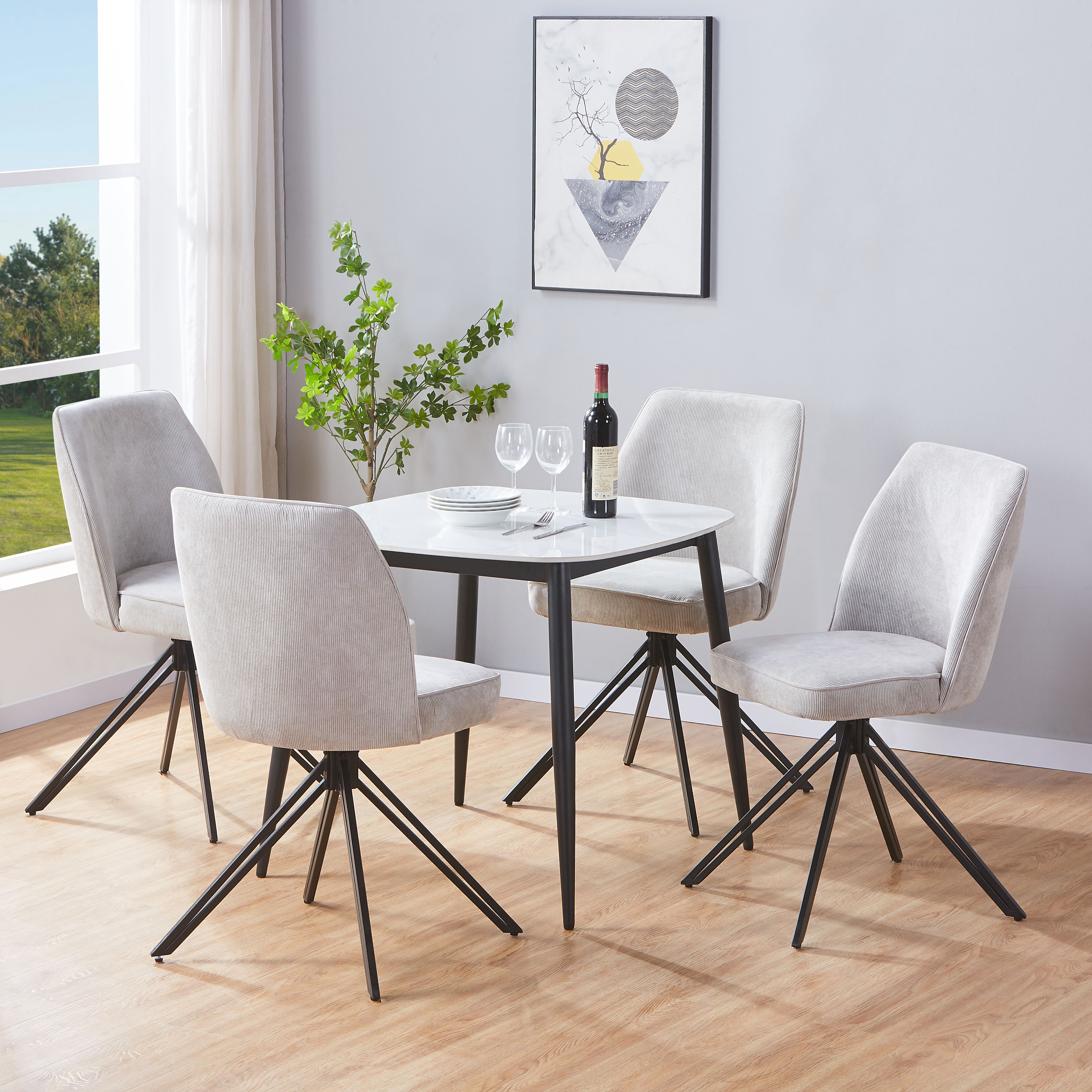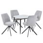 NEXO Sintered Stone Square Dining Table with 4 Swivel Fabric Chairs - Gloss White with Light Grey