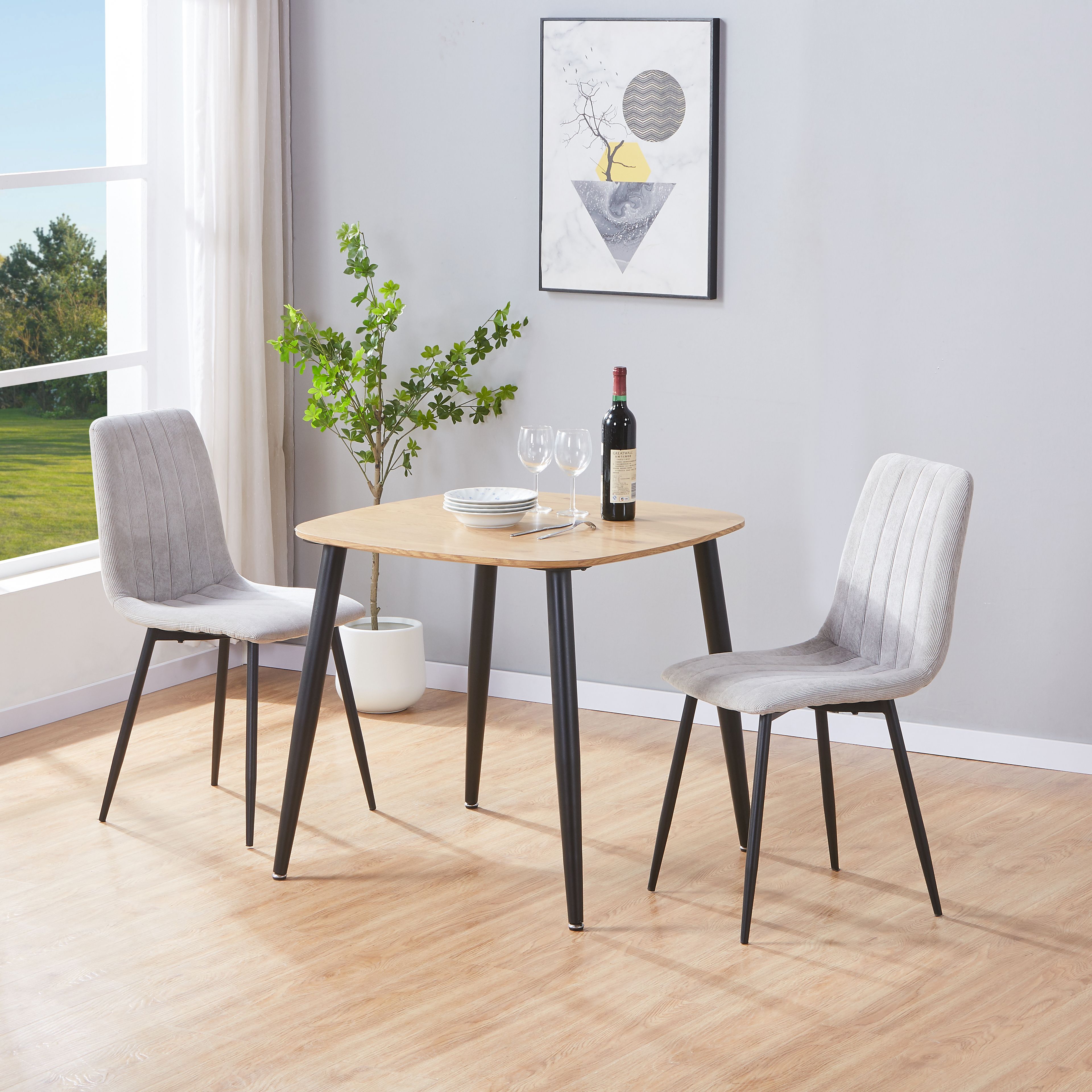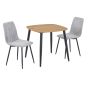 NEXO Square Dining Table with 2 Cord Straight Stitch Fabric Chairs - Light Oak with Light Grey